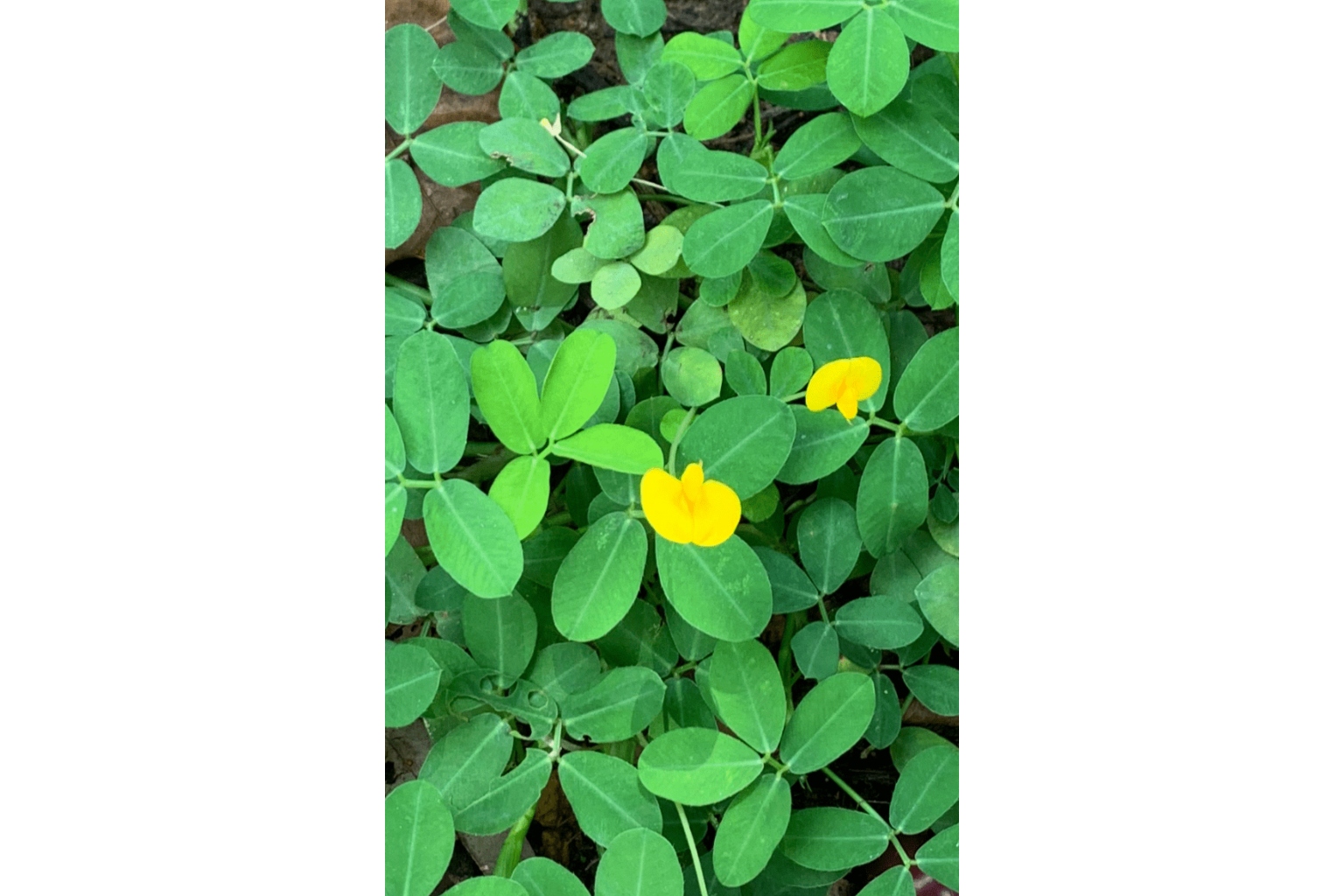 The plant shown is mostly grown in local landscapes as a groundcover and is botanically known as Arachis pintoi. Its common name is Pinto peanut.