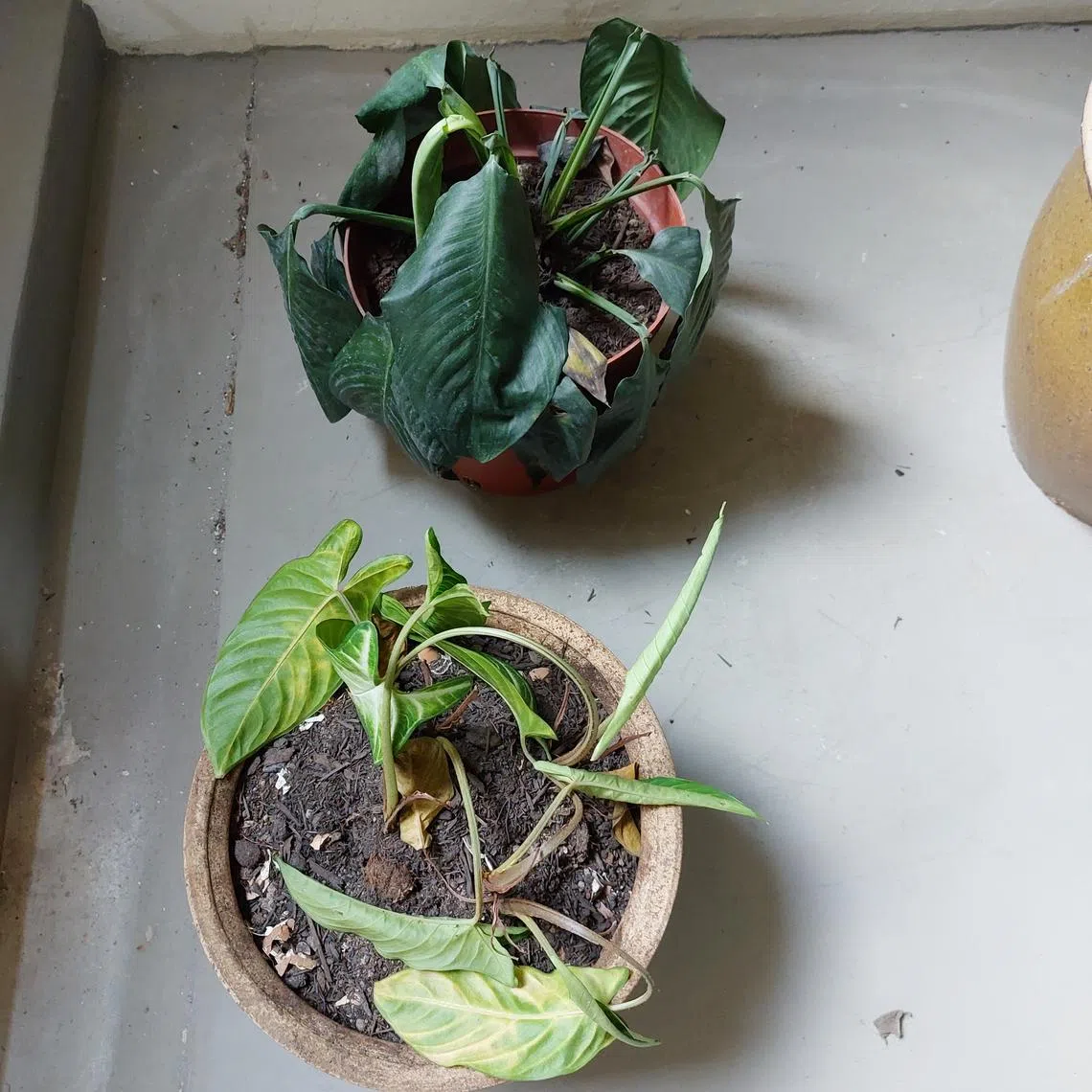 The peace lily (above) and Angel Wing (below) are both dehydrated.