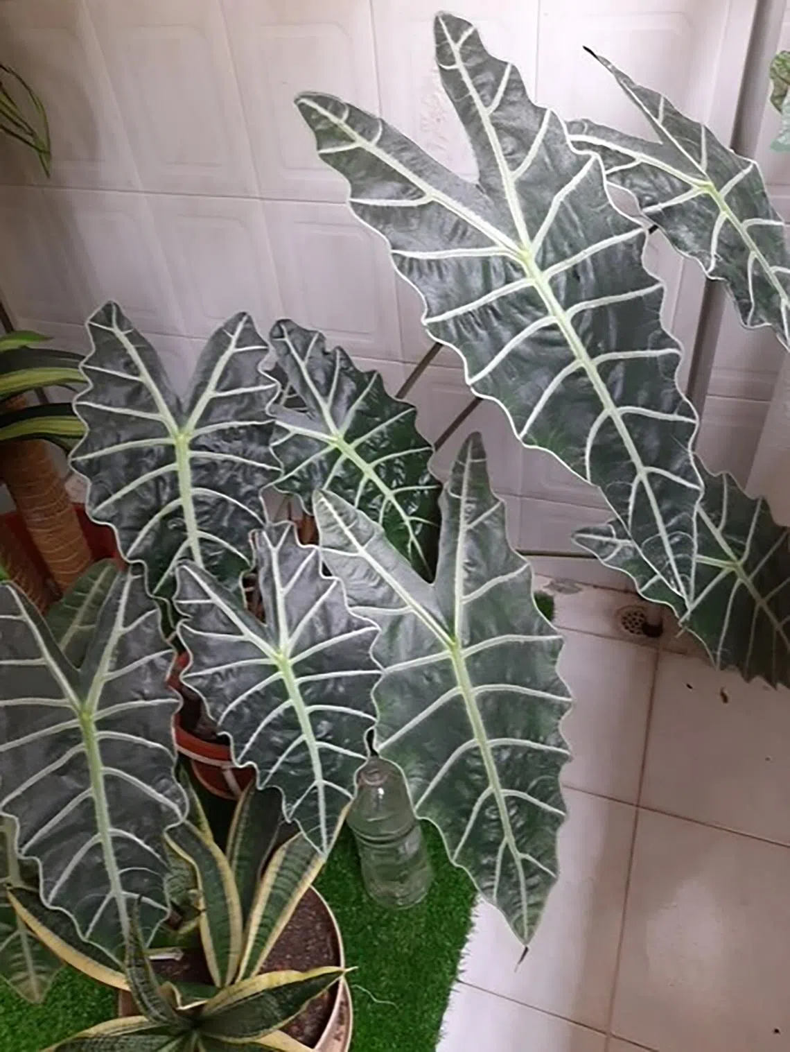 I bought a small Alocasia from the supermarket. After a month, I transplanted it into a 20cm pot, including the repotting soil, rice husks and dried banana peel. I have placed the pot at my balcony, where it gets morning sun. Is there a botanical explanation why the leaves remain evergreen?