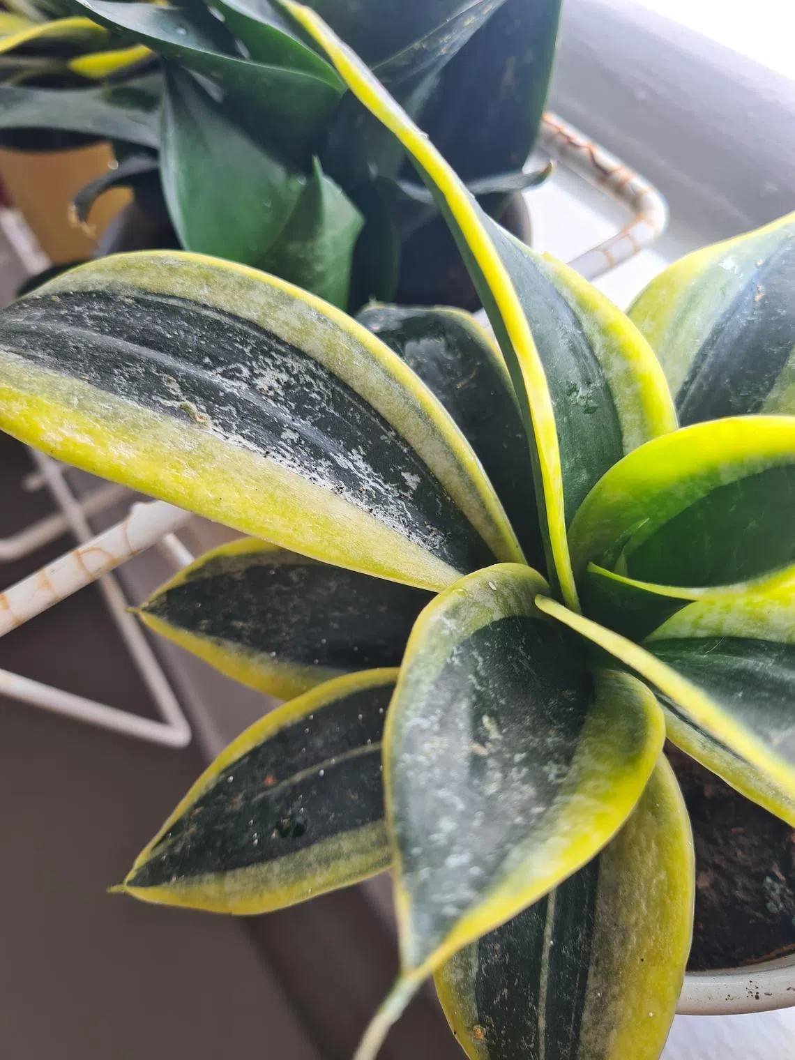 This snake plant may be infested by scale insects or have oedema.