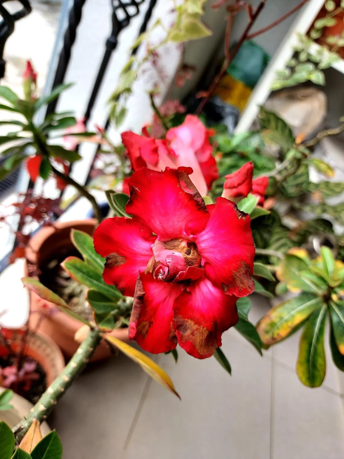 The petals on this desert rose turn brown even before blooming. What is wrong?
