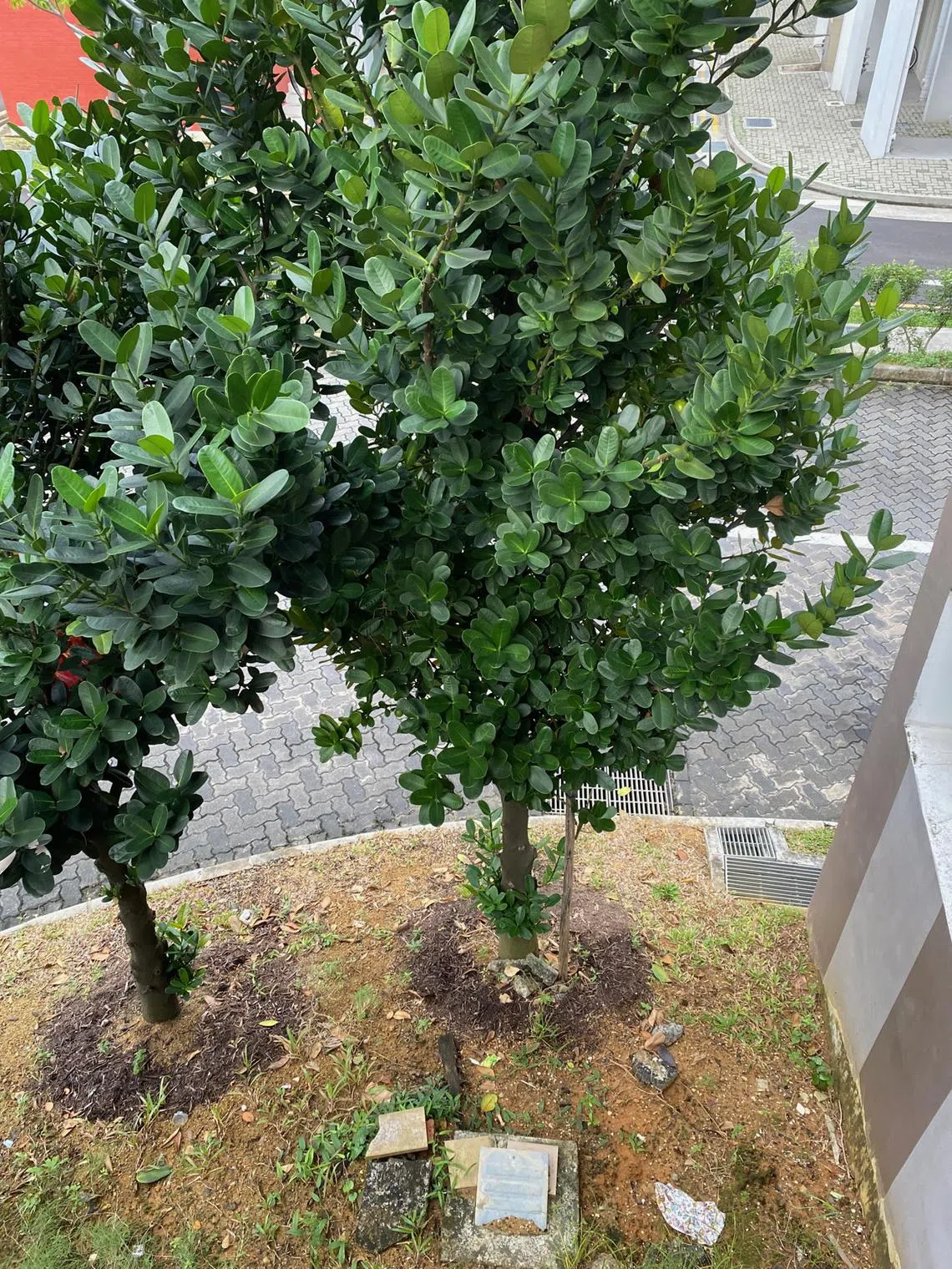 The plant is the Happiness Tree (Garcinia subelliptica) and is often grown in local landscapes. It is a slow-growing tree and is propagated from seeds. Although its seeds are not commonly sold here, you can buy its saplings at large nurseries.