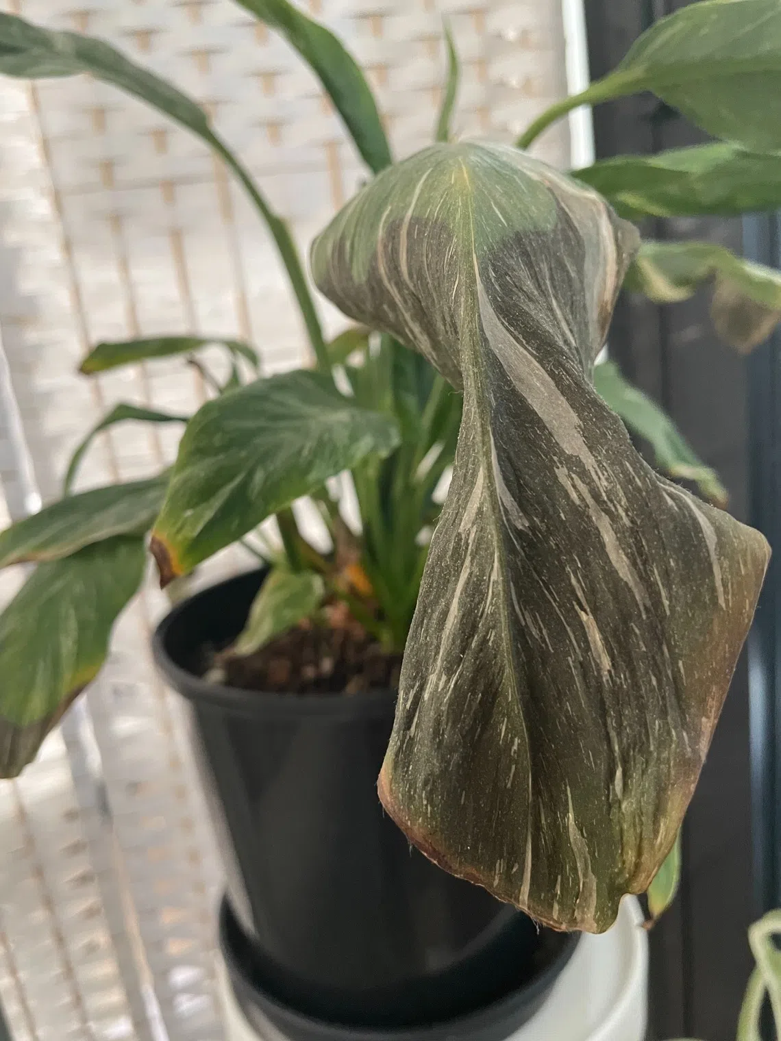 What is wrong with my Peace Lily? Some of its leaves, though not all, are turning black from the tips. I water deeply when its leaves droop and fertilise every few weeks. It gets filtered sunlight.