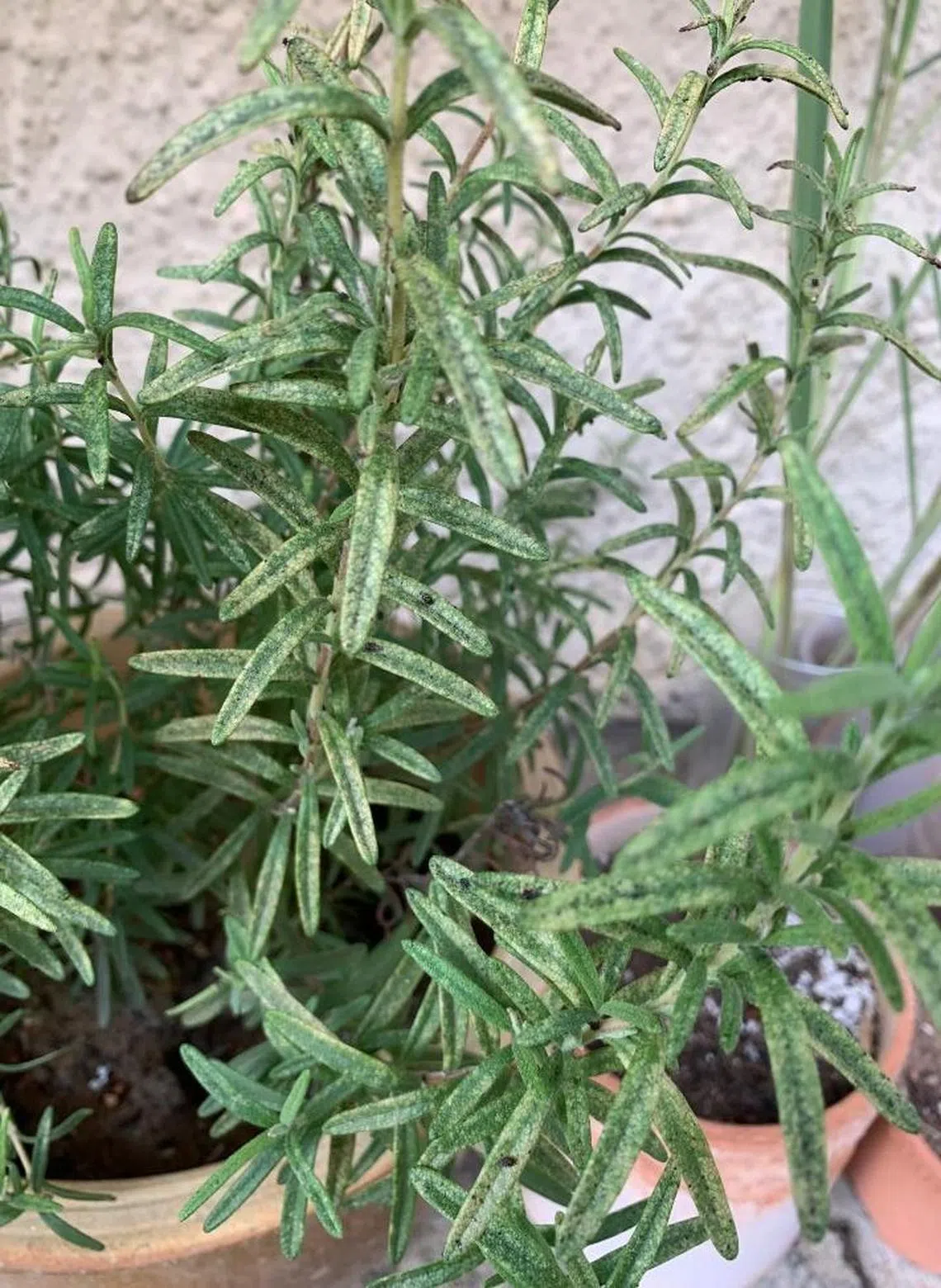 Rosemary plant infested with lace bugs