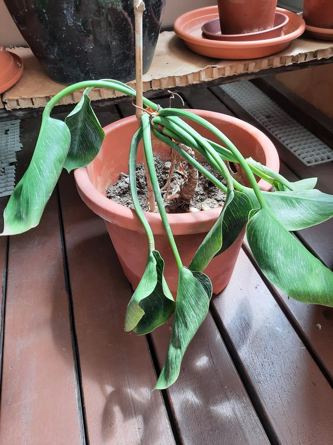 This plant on my balcony does not sit in direct sunlight. The leaves have curled and the stem is droopy. Is there a way to revive it?