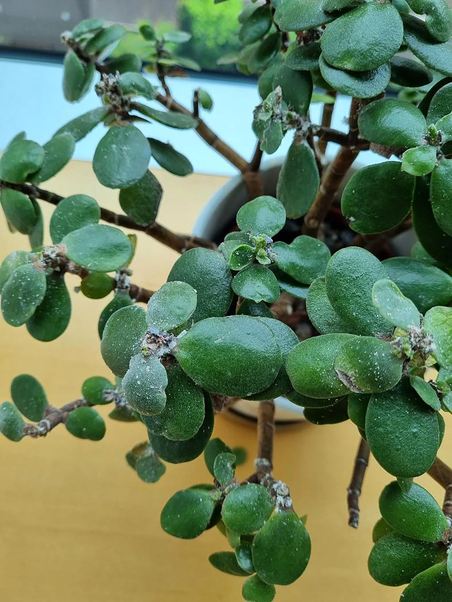 The mouldy symptoms of the jade plant could be due to the presence of sap-sucking pests.