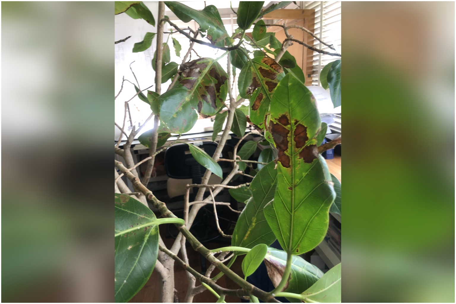 I have another tree with yellowish-green variegated leaves and two more Ficus lyrata. All my plants are about 1.8m to 2m tall and suffer from the same issues as the above. They are placed near half-height windows in my flat.