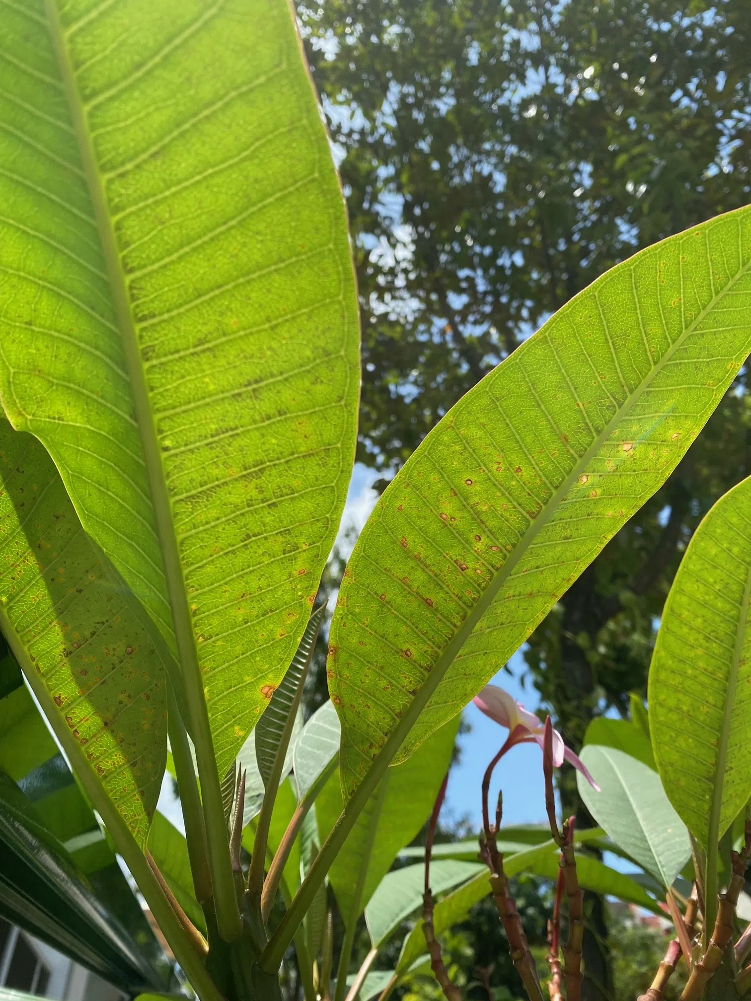 I transplanted my frangipani into the ground, but the leaves look infected. Fungicide and insecticide do not work. What should I do?