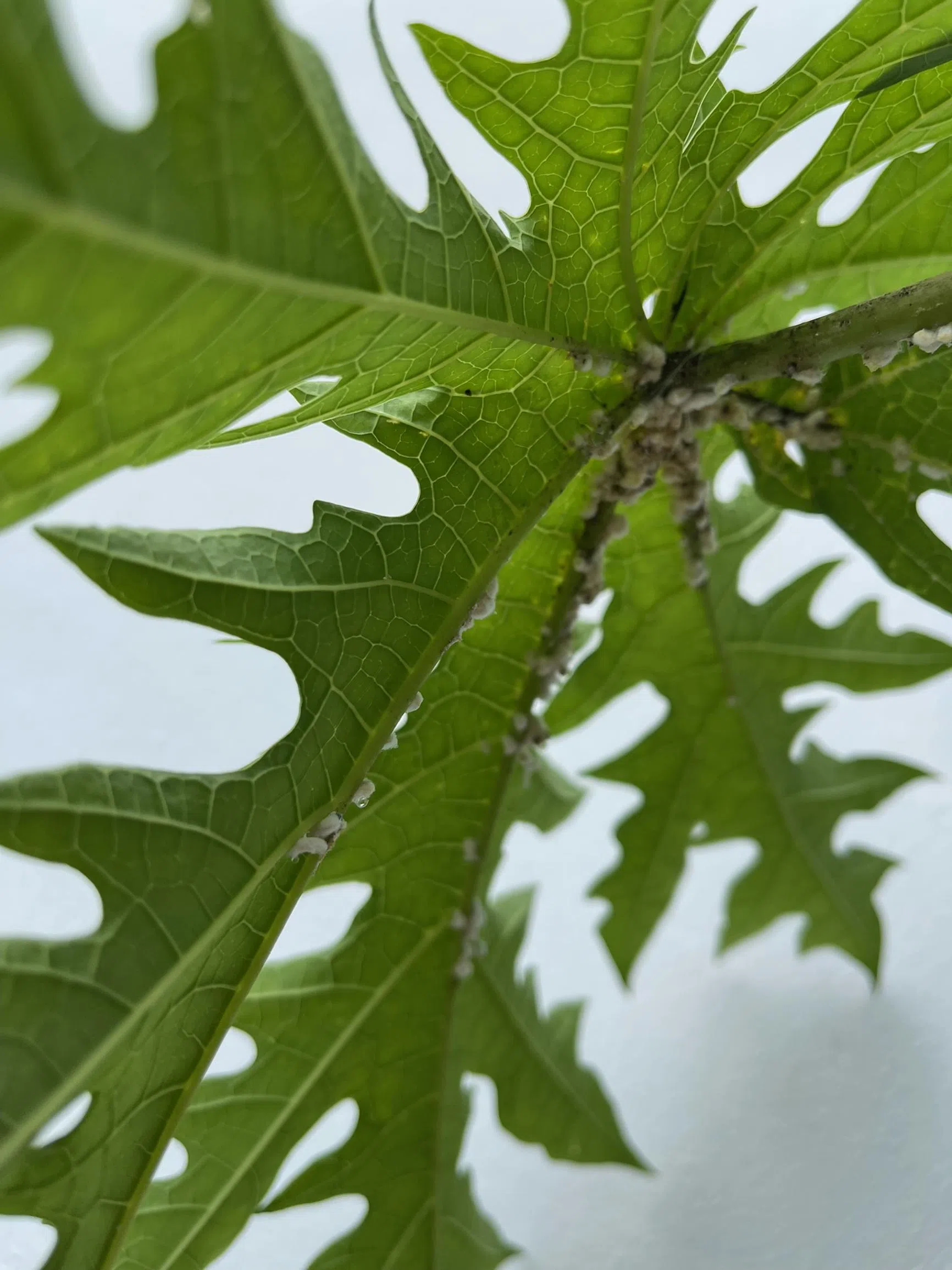 Papaya plant is infested with sap-sucking pests