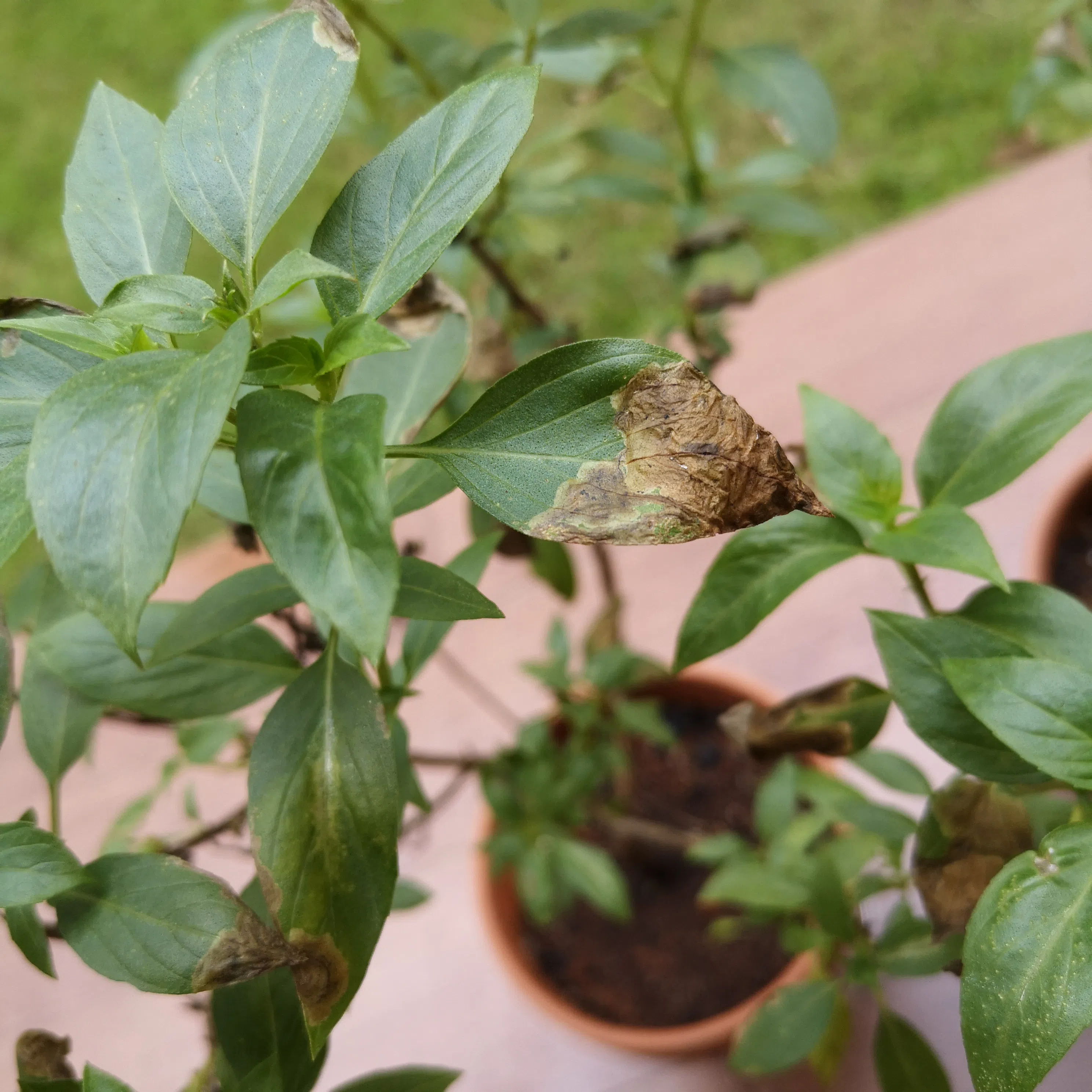 The leaves of my Thai basil plants have been turning brown at the tips. Could this be due to fertiliser burn or some other issue?