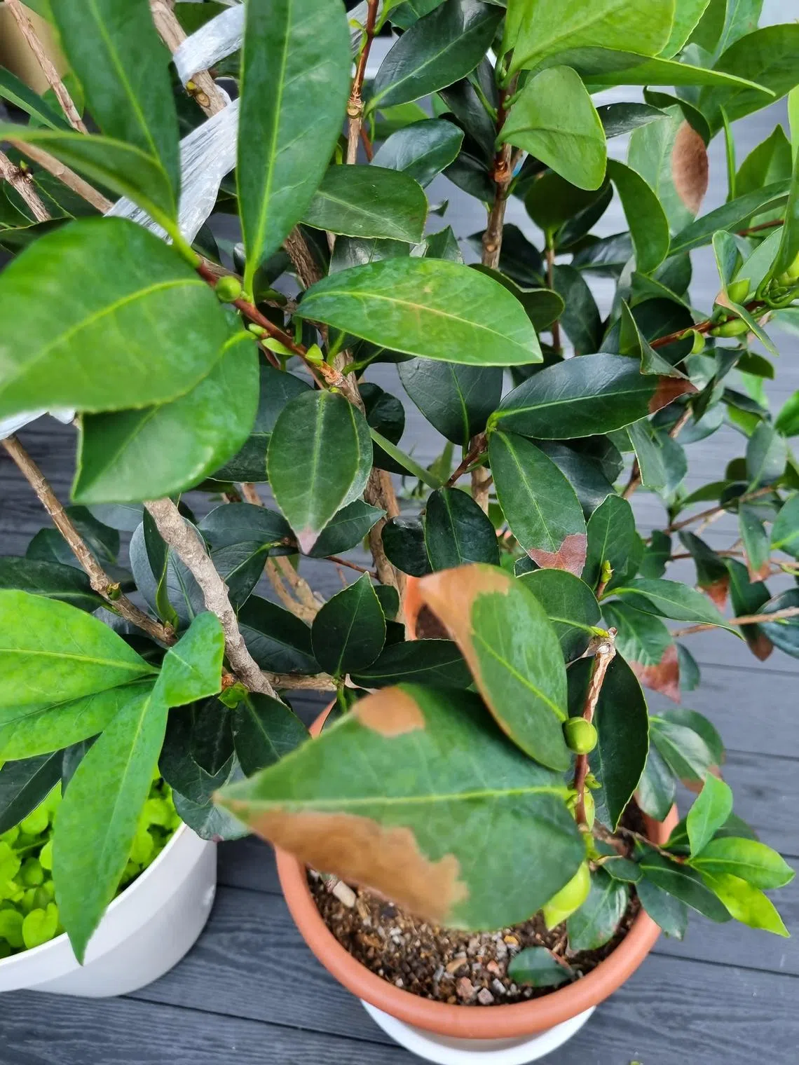 Avoid over-feeding your plant, especially with chemical fertiliser pellets. Excessive fertiliser salts can damage the plant and induce symptoms similar to those shown in the picture.