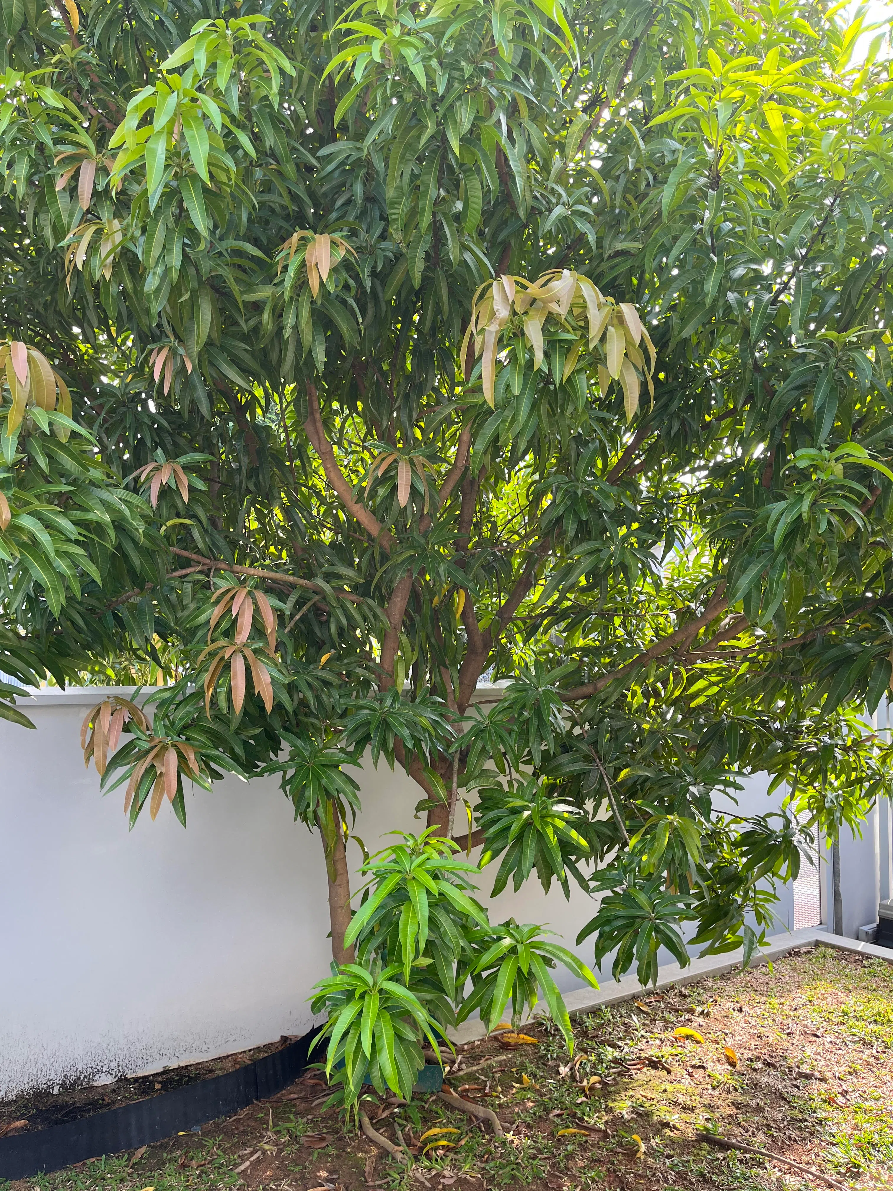 The mango tree can grow quite large and planting it so near to your boundary wall may result in its roots damaging the structure. Leaves may fall into your neighbour’s residence and cast shadows in his or her garden as well.