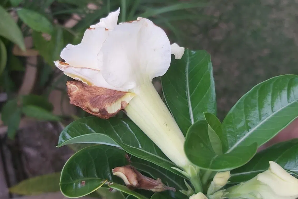 The Desert Rose can be infected with disease if it has been hit by heavy rain. You may want to place flowering plants under a clear shelter to protect them from rain and reduce the likelihood of damage and disease.