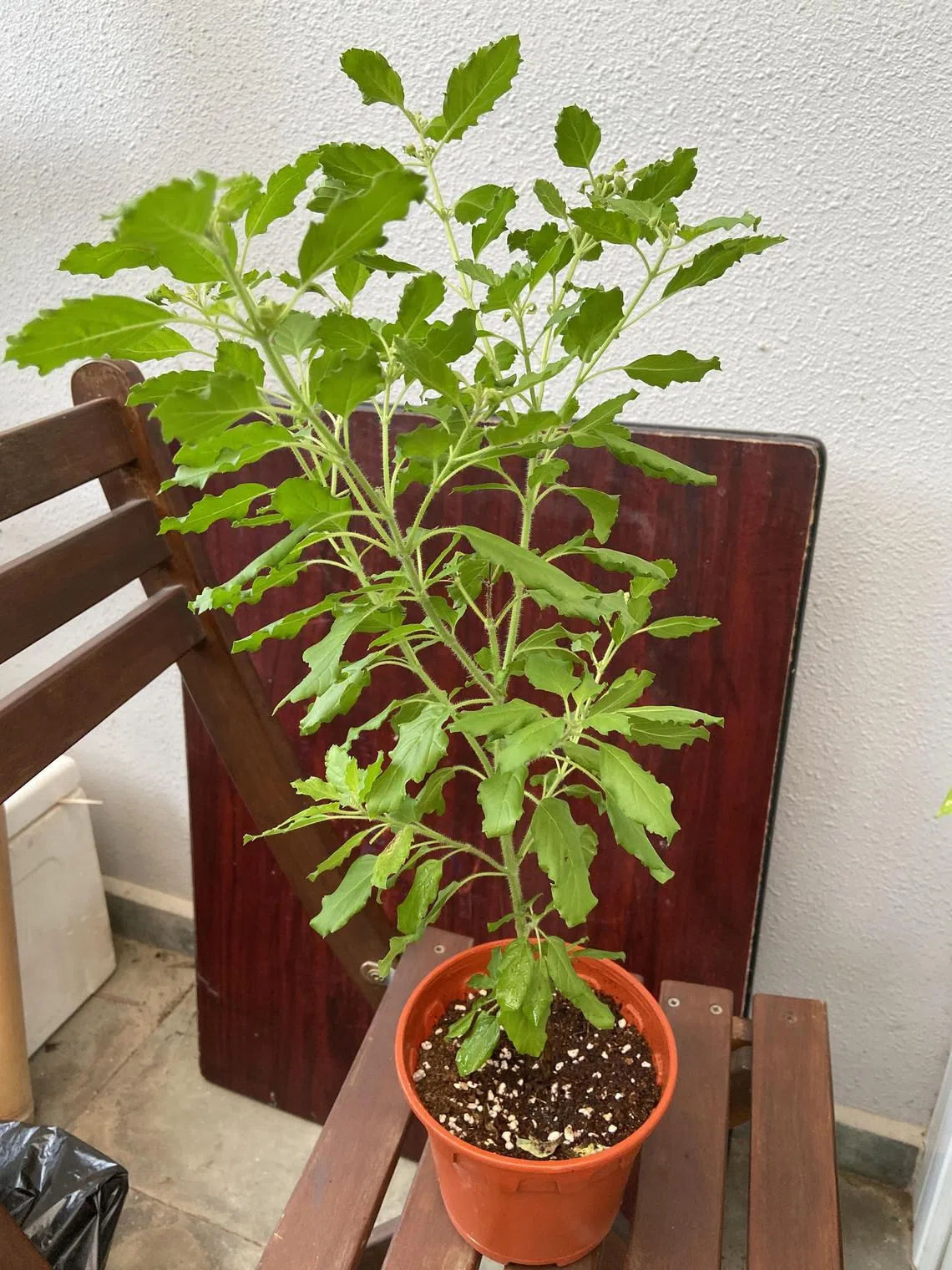 This plant is the green version of the Holy Basil (Ocimum tenuiflorum). It is a relative of the common Sweet Basil, but with a different scent and flavour. You can use its leaves to brew tea or stir-fry them with meat in a Thai-style dish. This plant produces seeds and new seedlings grow readily around the mother plant.