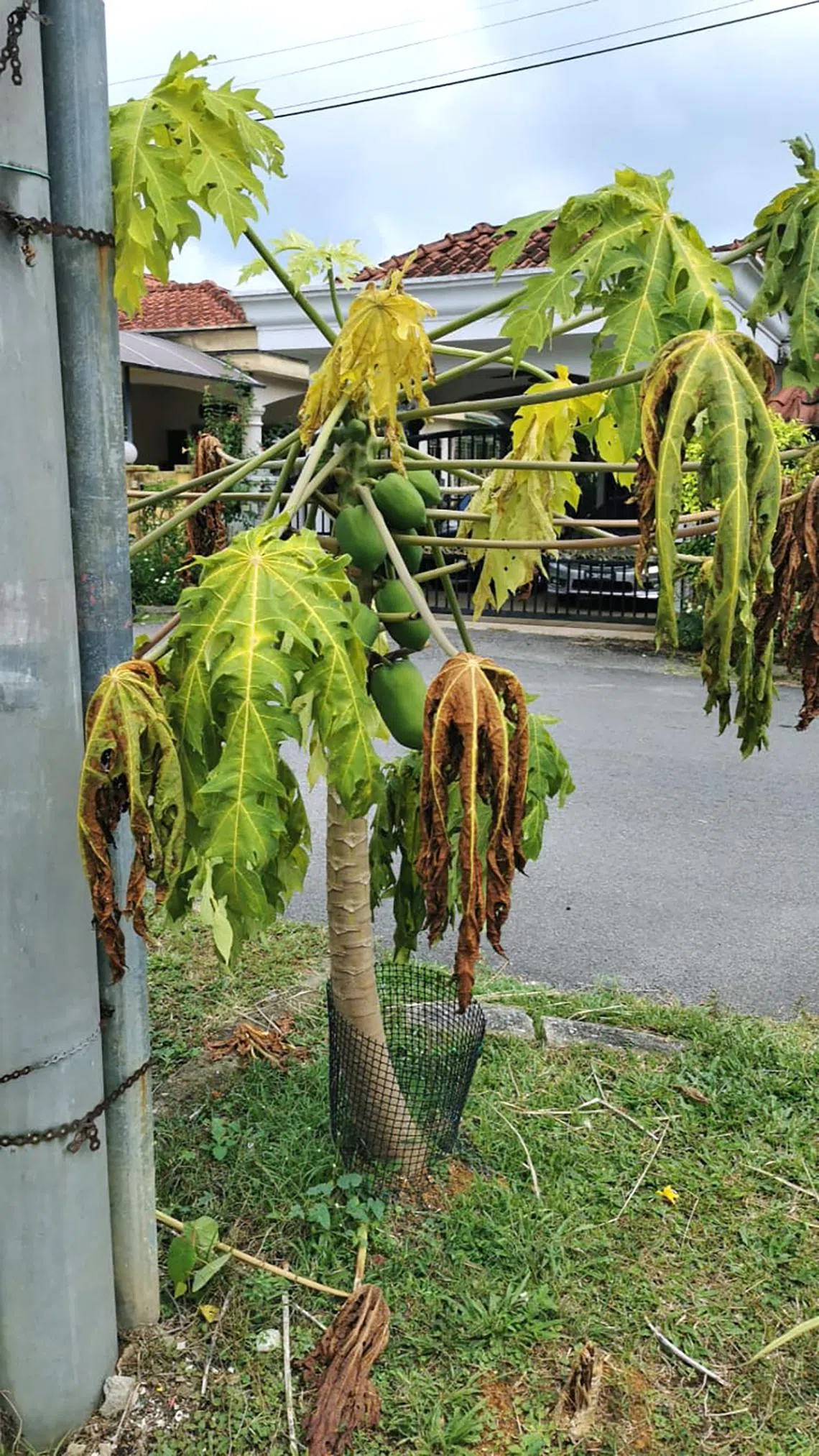 My papaya plant’s leaves have started turning yellow, but its trunk and fruit still look healthy. What is wrong?