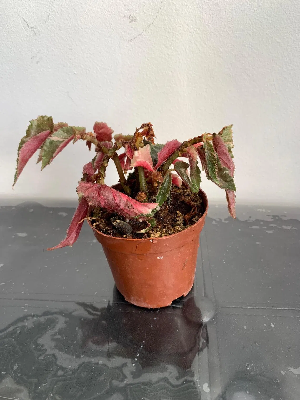 When I bought my begonia a few months ago, I was told to water the plant every day to ensure that the soil, a well-draining mix, does not stay dry for too long. The plant gets direct afternoon sun every day and a little liquid fertiliser every month. What is wrong?