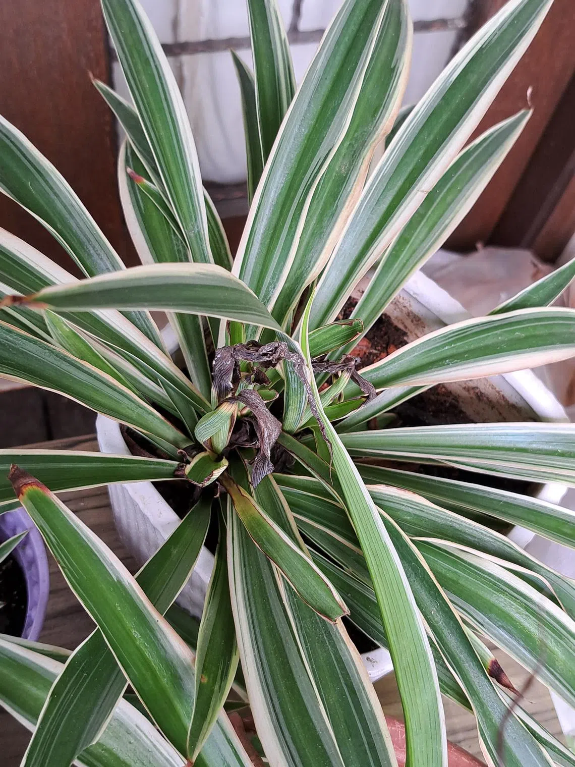 Spider plants grow as rosettes and gardeners tend to plant them too deeply. Soil that has been heaped around the plant’s crown or fallen into the centre of the plant or its leaf axils can cause the leaves to rot and fall apart.