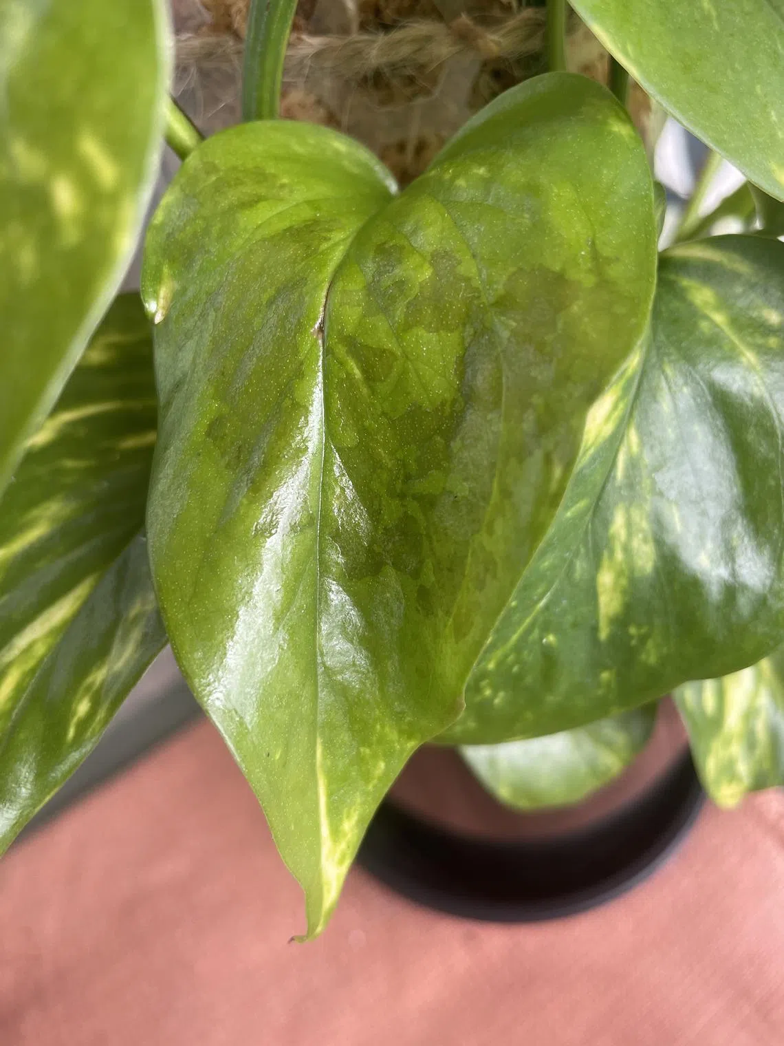 The patches on the leaves of the Golden Pothos appear to be a kind of burn.