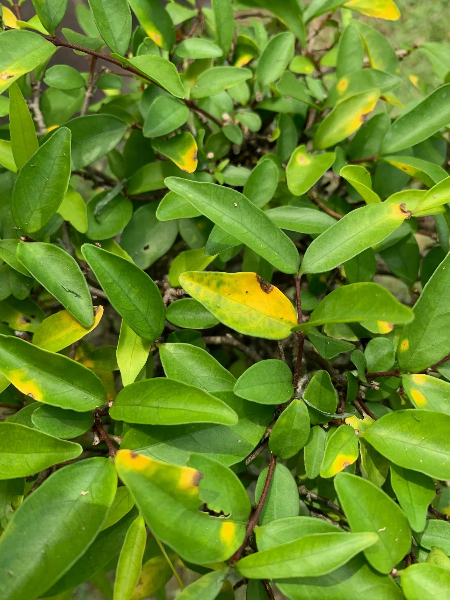 These shrubs measure about 1m tall on average. They are planted in the ground around my house, where they get full sunlight. They are watered daily – except on rainy days – and have tiny white flowers. I have had them for more than 30 years.