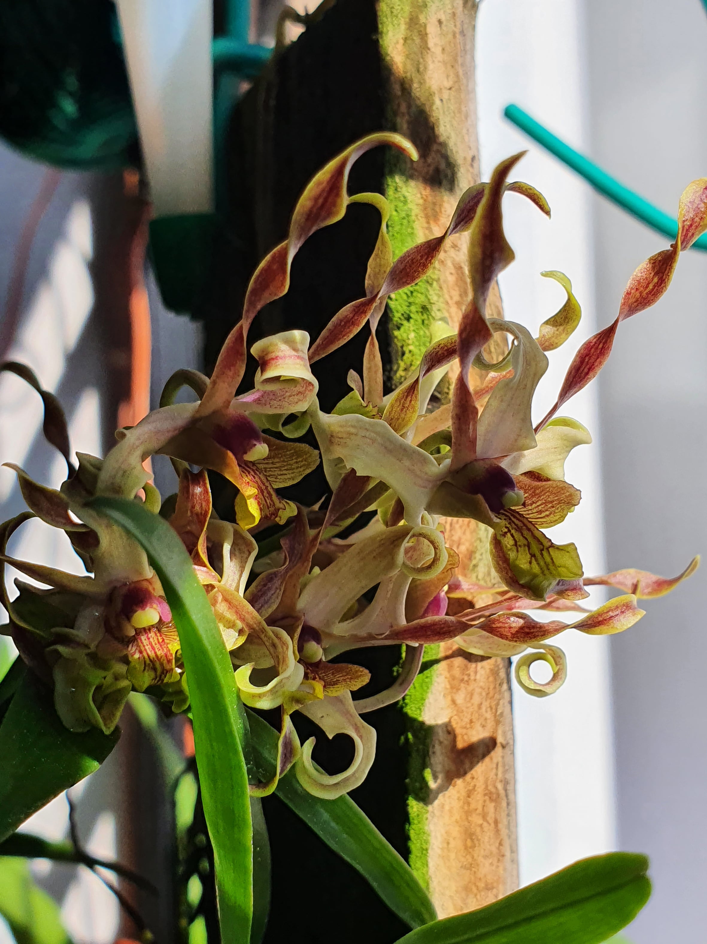 From the two upright petals, your orchid appears to be an antelope Dendrobium hybrid. These plants usually require at least six hours a day of direct sunlight to thrive, and regular feeding with fertiliser to promote flowering. Orchids are epiphytes and usually need chunky charcoal growing media to flourish in Singapore's tropical climate.