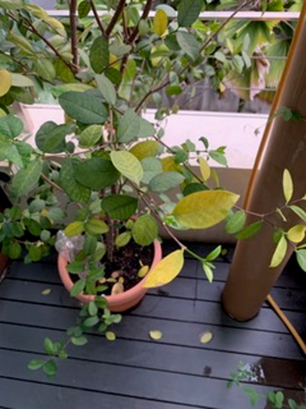 My plant was growing well, almost doubling in height to 70cm and producing dark green leaves. However, in the past few months, the leaves have been turning yellow and falling off, and the plant has also stopped flowering. I added more soil to the pot and fertilised the plant, but to no avail. The undersides of the leaves also began to feel sandy and rough. What is wrong?