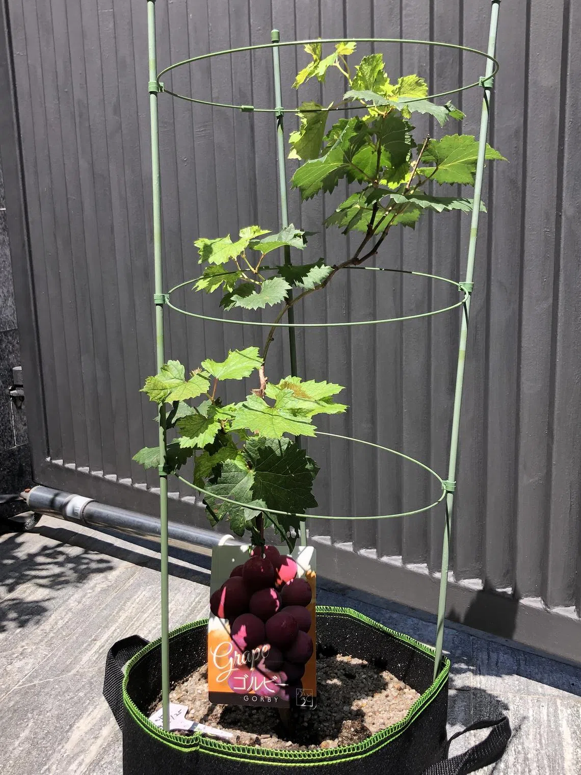 Grape plants are climbers and can grow quite large. You will eventually need to transfer it to a bigger container. Avoid planting it in the ground, as waterlogged conditions during the rainy season can kill the plant.