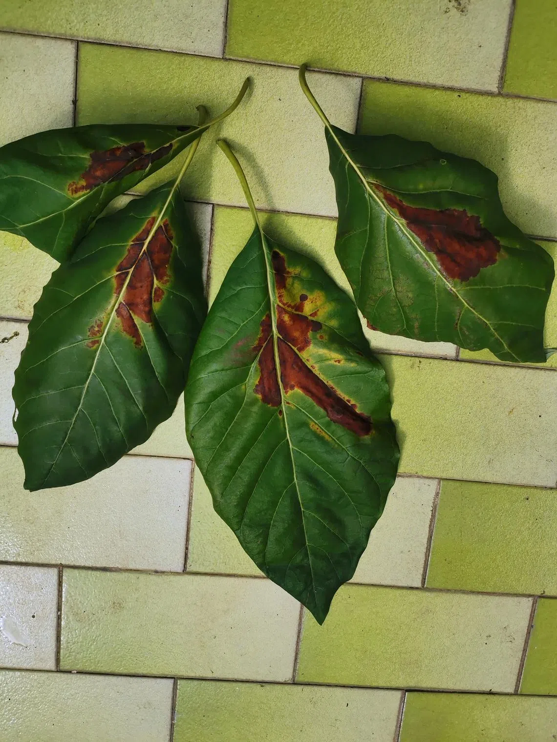 The avocado plant in my garden has brown patches on its leaves. Are these due to heat, fungus or disease?