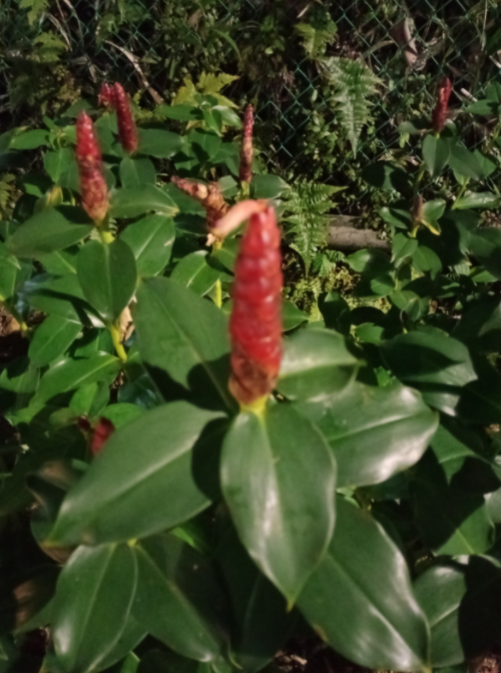 The plant shown here is the Scarlet Spiral Flag (botanical name Costus woodsonii) and belongs to the spiral ginger family, Costaceae.