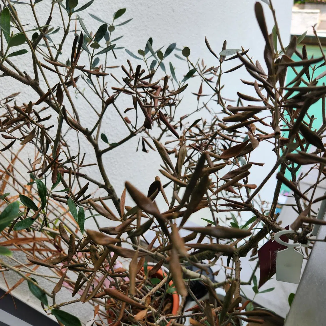 My olive tree was doing fine with weekly watering until recently. Its leaves have curled and browned over the last three weeks. What is wrong?