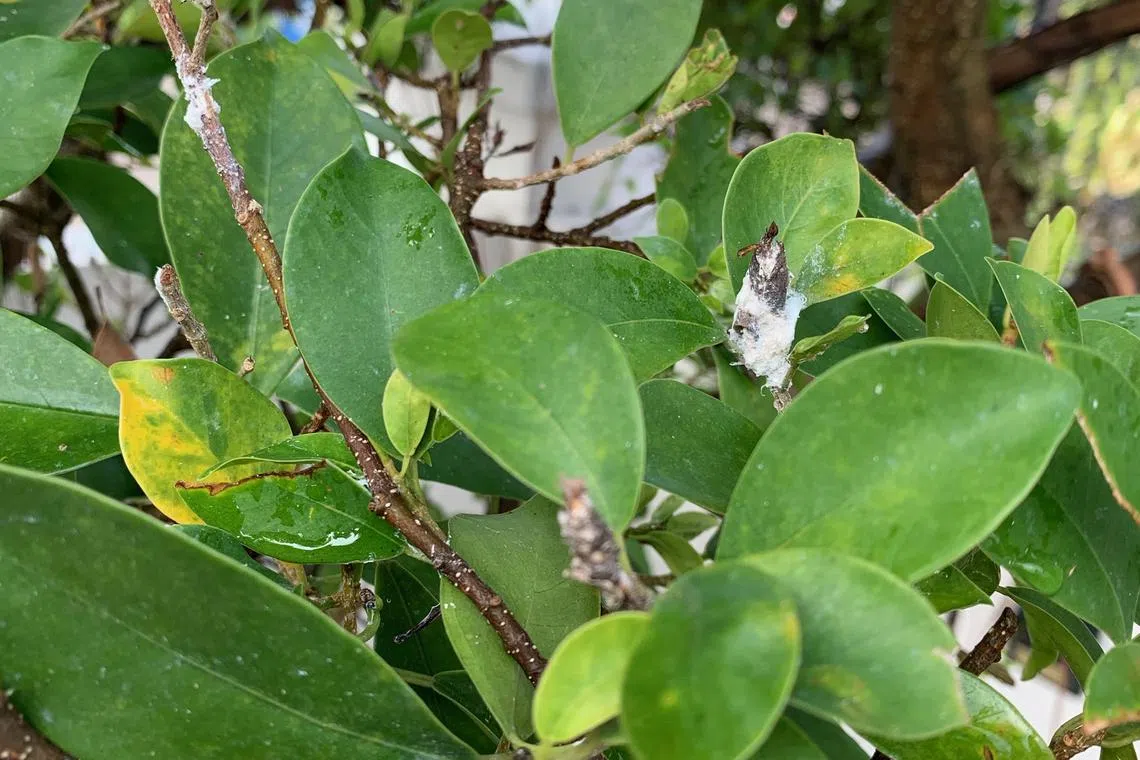 Ficus infested by sap-sucking pests
