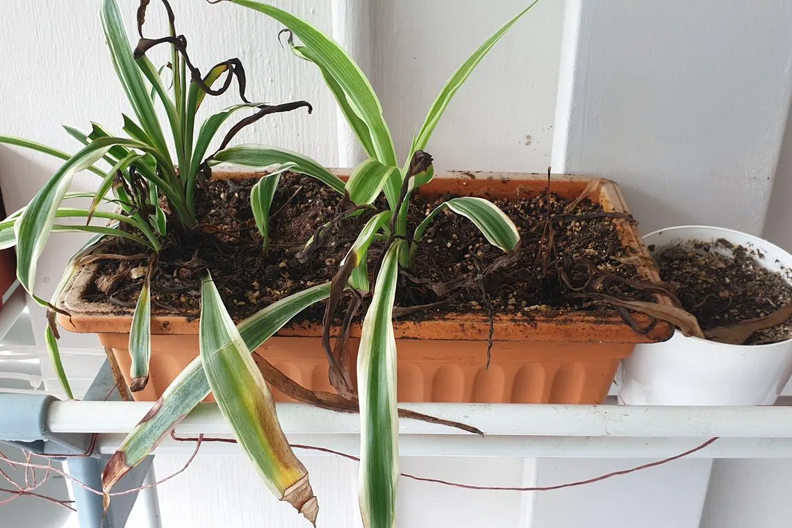 The spider plants along my corridor seem to have different growth rates. Some are weak and dying, while some are thriving. Why?