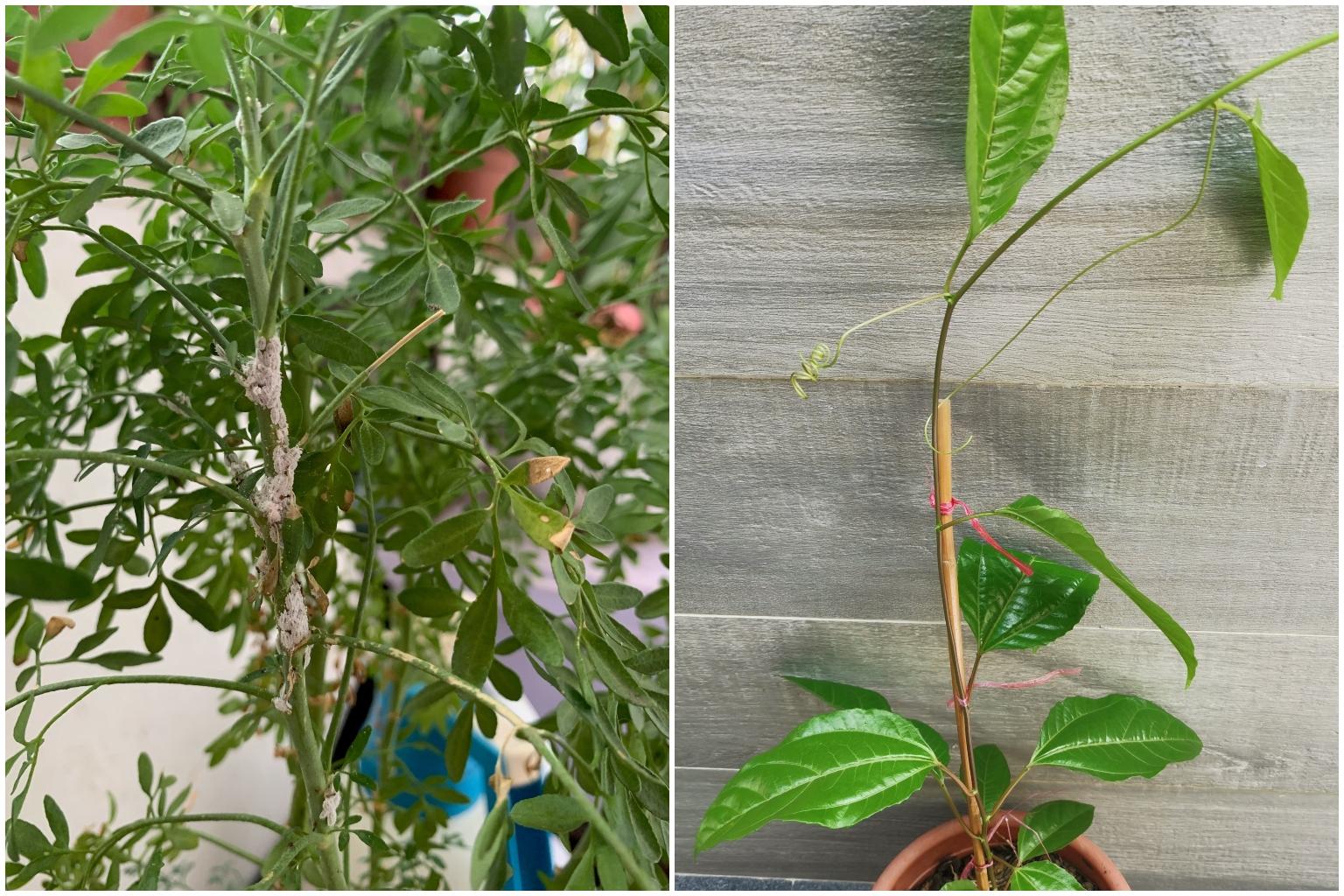 Indian Rue (left) and Passion Fruit plant.