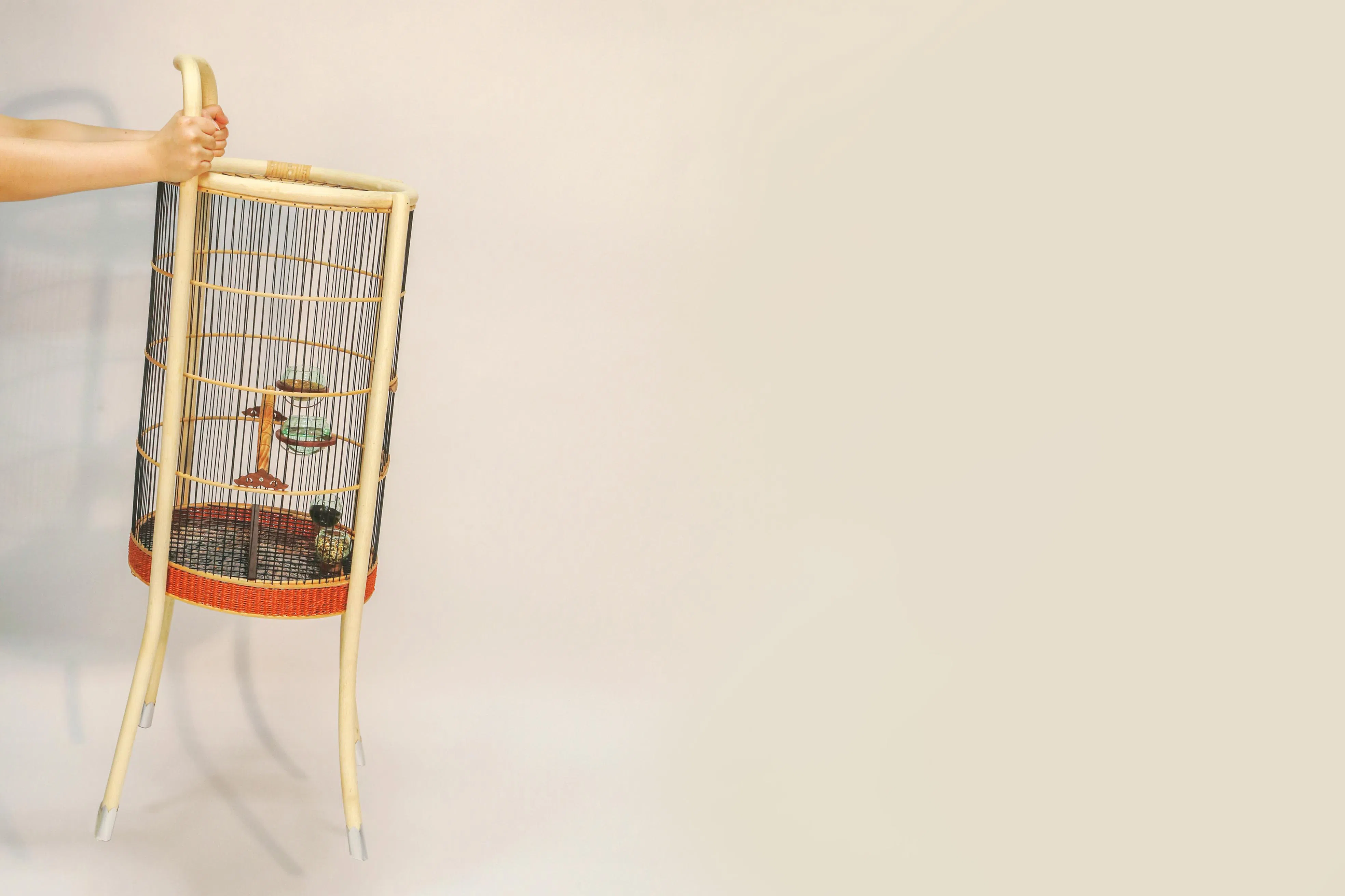 The Kinship Chair is a discursive piece of furniture that allows songbirds to join in at the table. It explores the social tradition of birds in Singapore as companion animals, and the potential of cages as physical and psychological “safe spaces”.