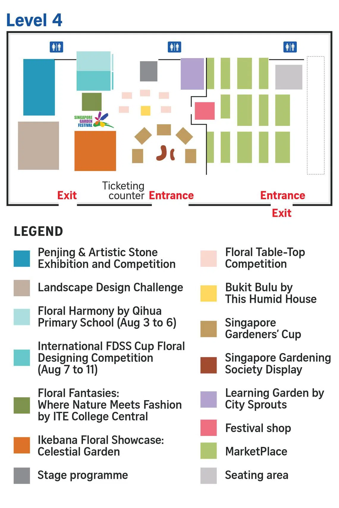 The festival covers about 22,000 sq m, or about 2ha, on Levels 4 and 6. This is nearly the size of 18 Olympic-size swimming pools.
