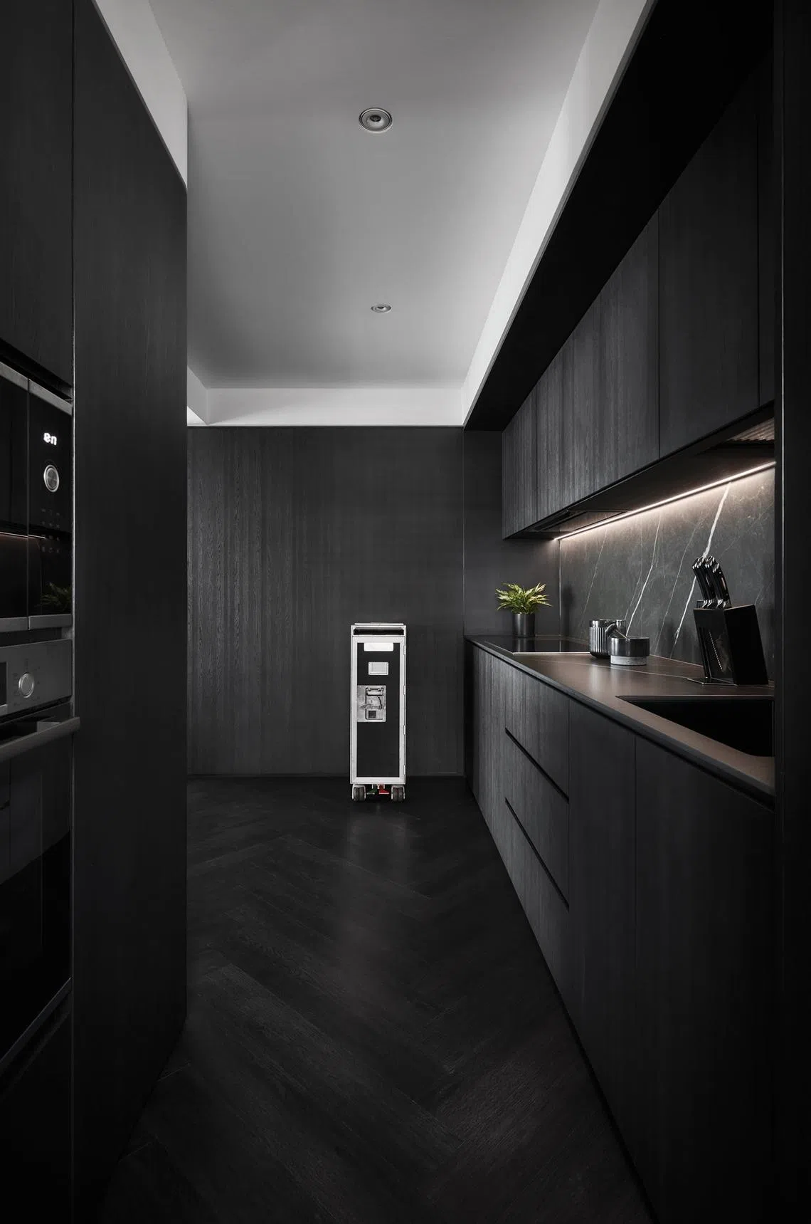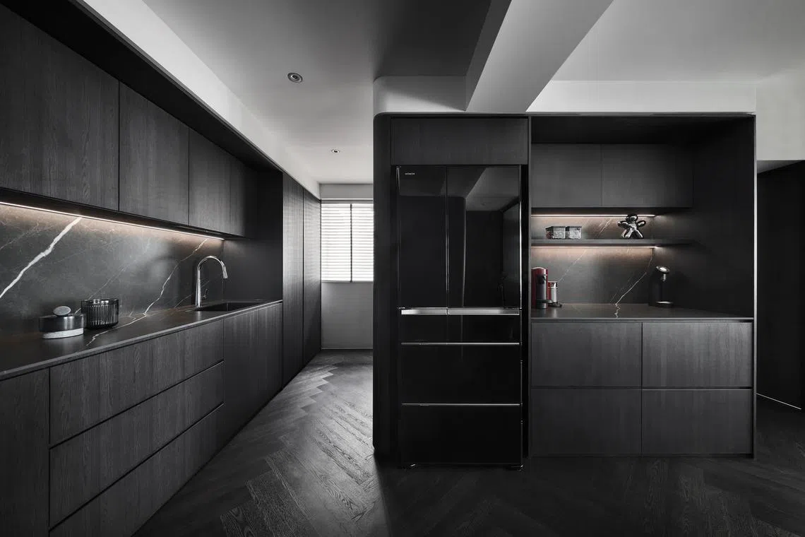 This may seem like a contradictory brief, but Happe Design Atelier’s senior interior designer Johnson Ng was undaunted. He sought inspiration from French painter, printmaker and sculptor Pierre Soulages, known as “the painter of black” for his works, which explore how light can transform a dark object and how textures of black surfaces can reflect light.