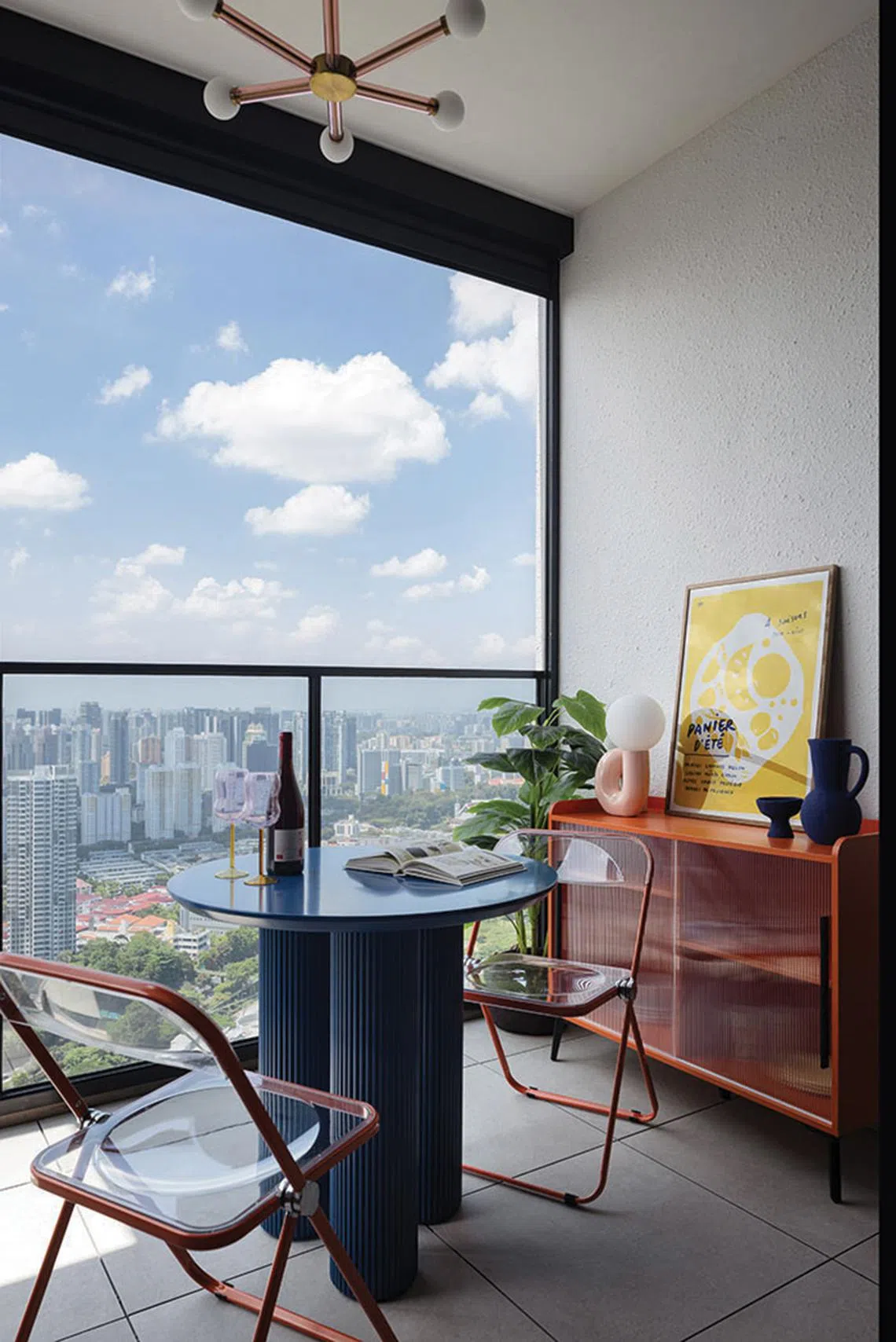 The dining area in the balcony has an unblocked view of the neighbourhood.