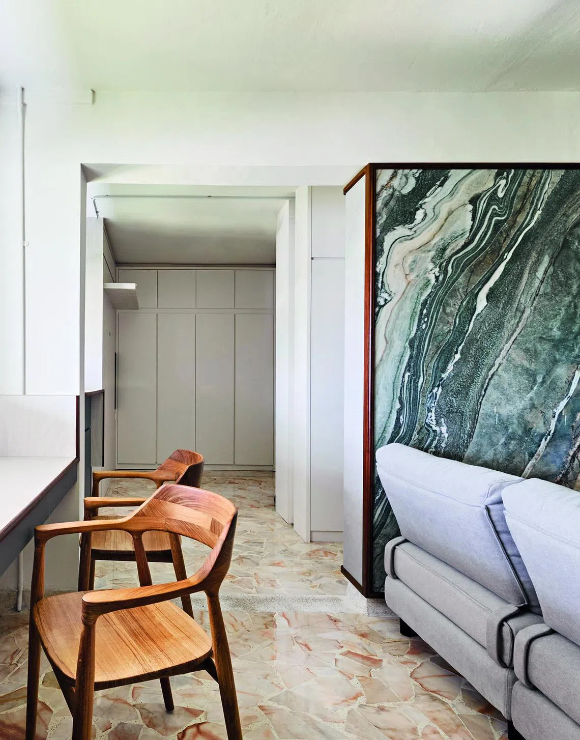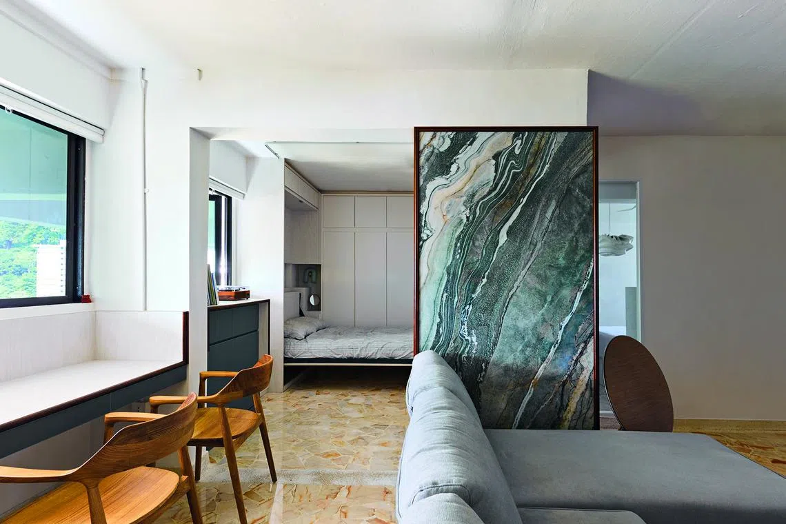 The couple – Mr Lee works in banking and Ms Tang owns an eatery – chose the 40-year-old unit for its original pink marble flooring and views of Mount Faber.