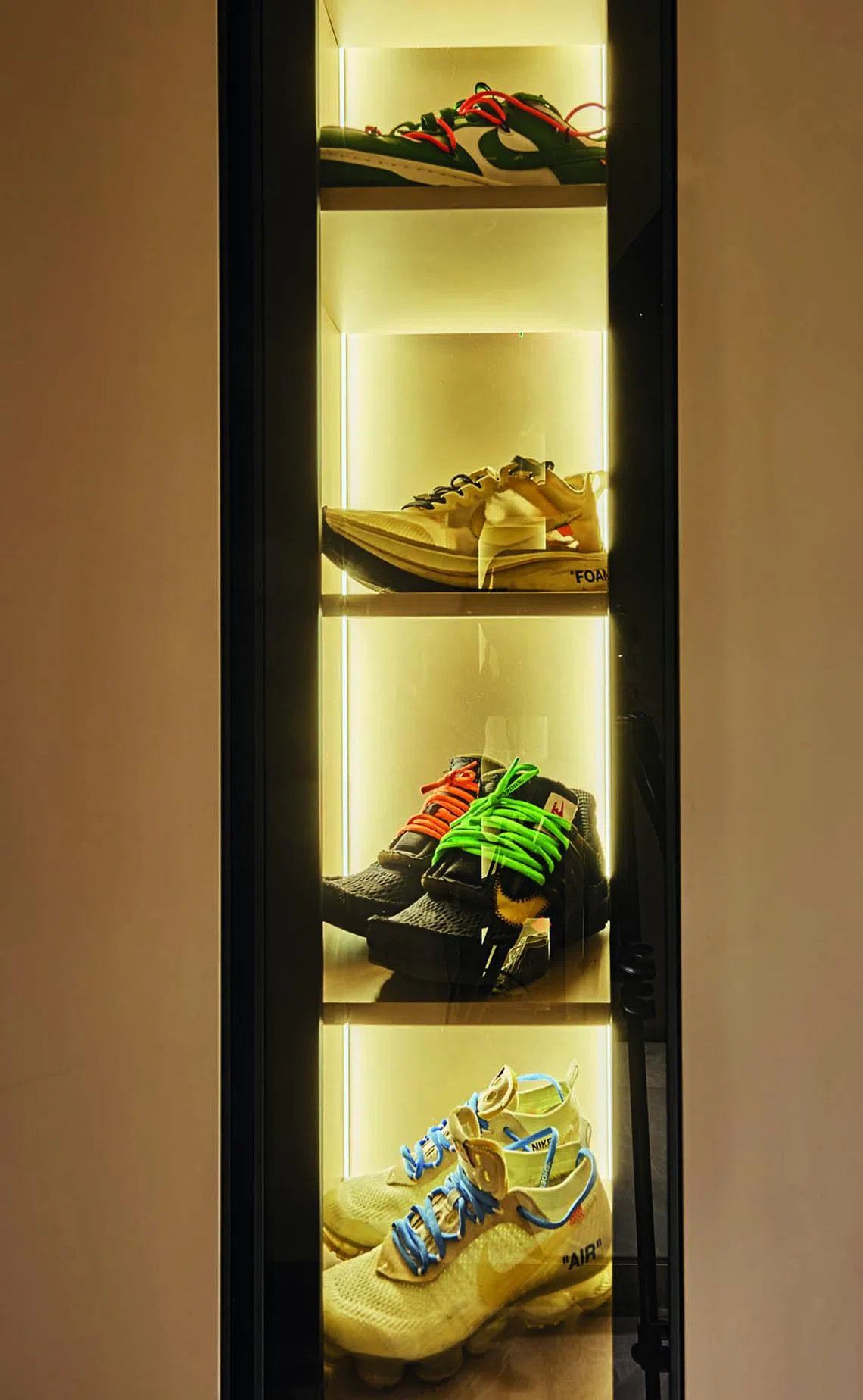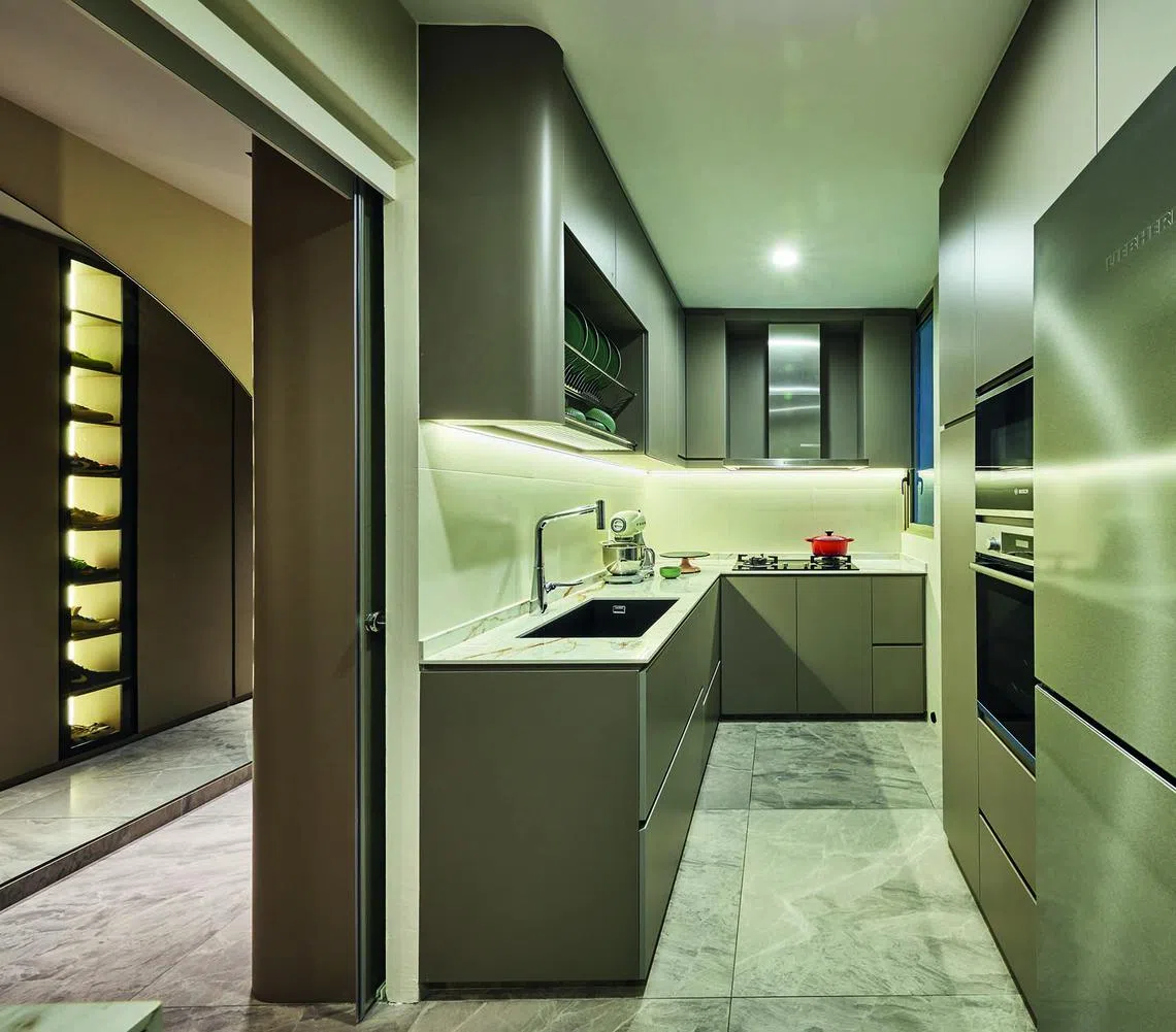 They engaged interior designer Don Wong, formerly of Lush Interior Design, to renovate the space. Their brief was one of understated luxury, with an open kitchen, a large coffee bar and dining table, a spacious study and enough room for their collections, which range from apparel and accessories to whiskeys and gaming gadgets.