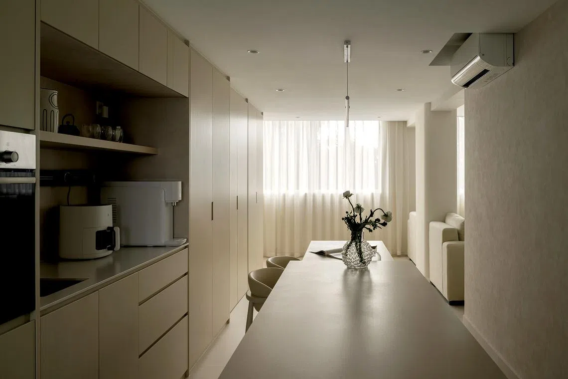 SINGAPORE – “Minimalist” and “monochromatic” are the two words that immediately come to mind when stepping into this 720 sq ft Housing Board flat in Bedok North.