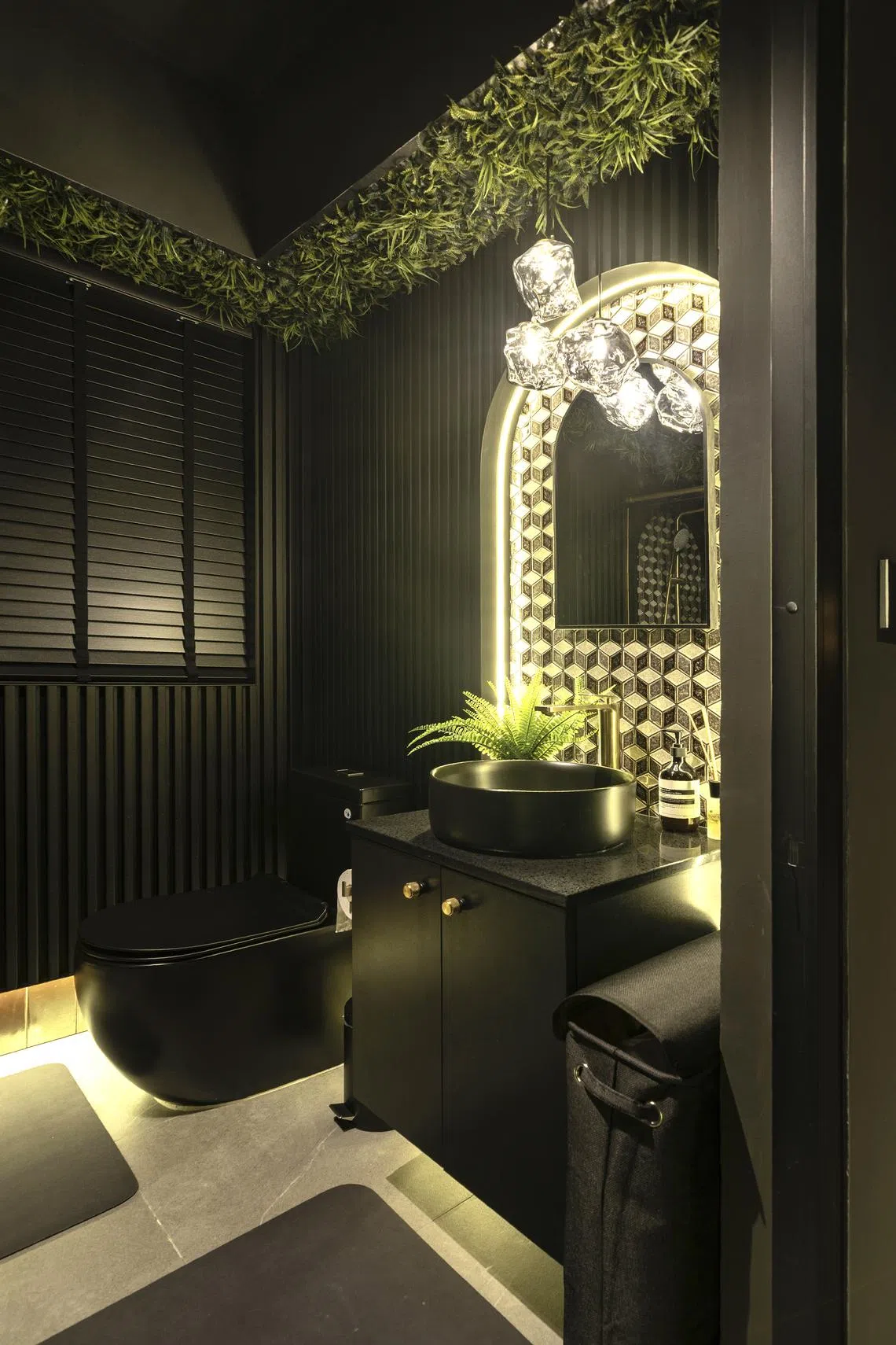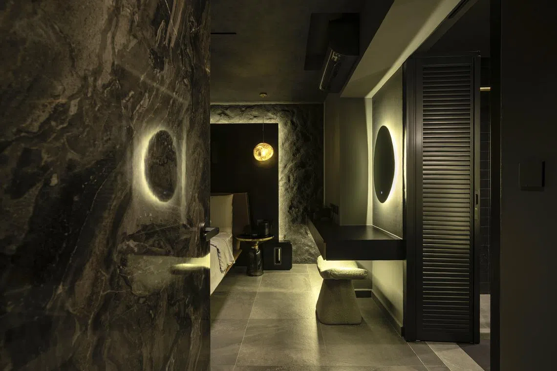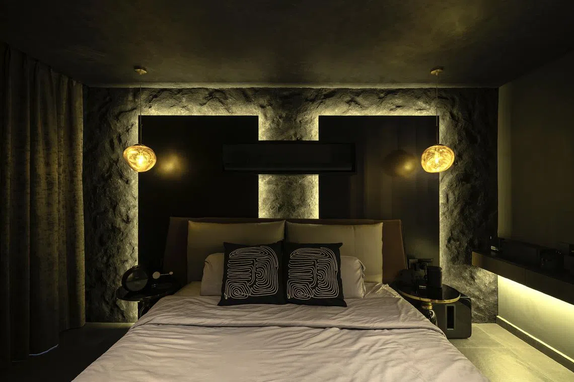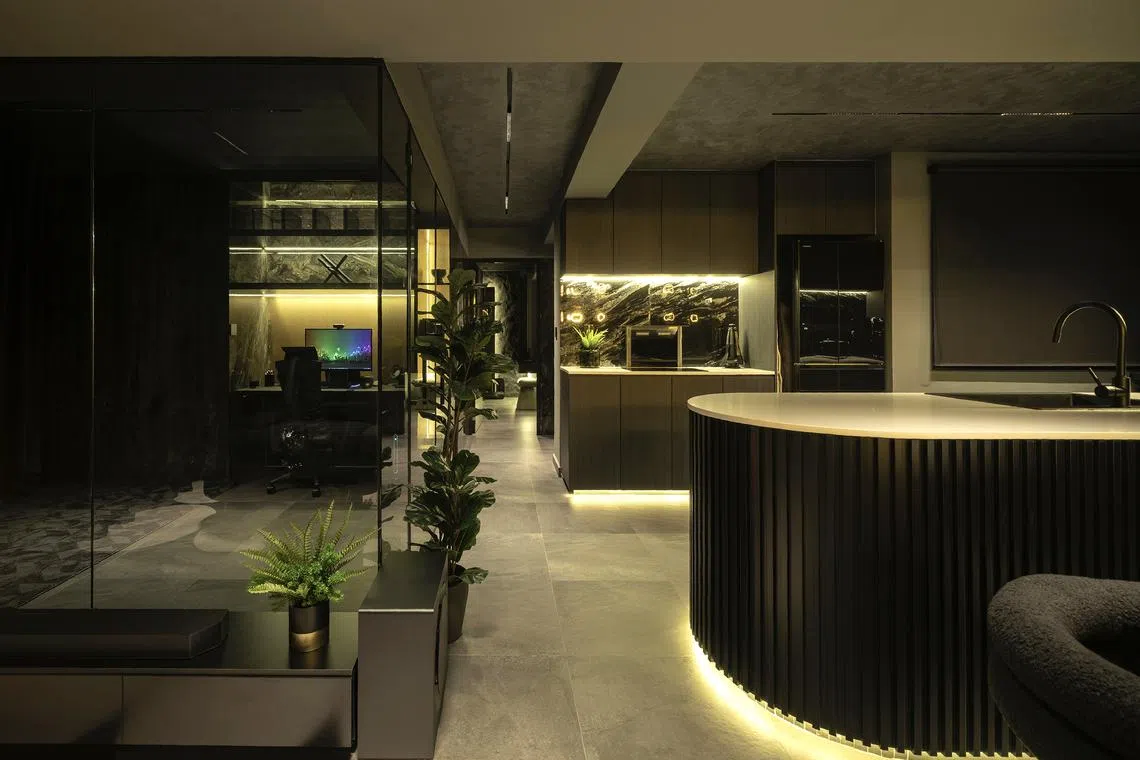 SINGAPORE – Combining dark modern luxe with raw textures, stone elements and artificial plants can be challenging – especially since the decor style is usually synonymous with refinement.