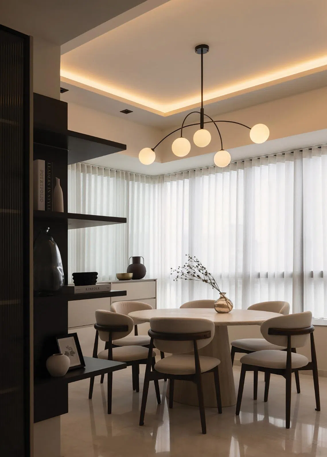 “The clients like to entertain, so we did not force the living and dining areas into one single space. Instead, we added a clear demarcation between the two so that they can have their hosting space as its own feature within the home,” says Ms Tulshyan.