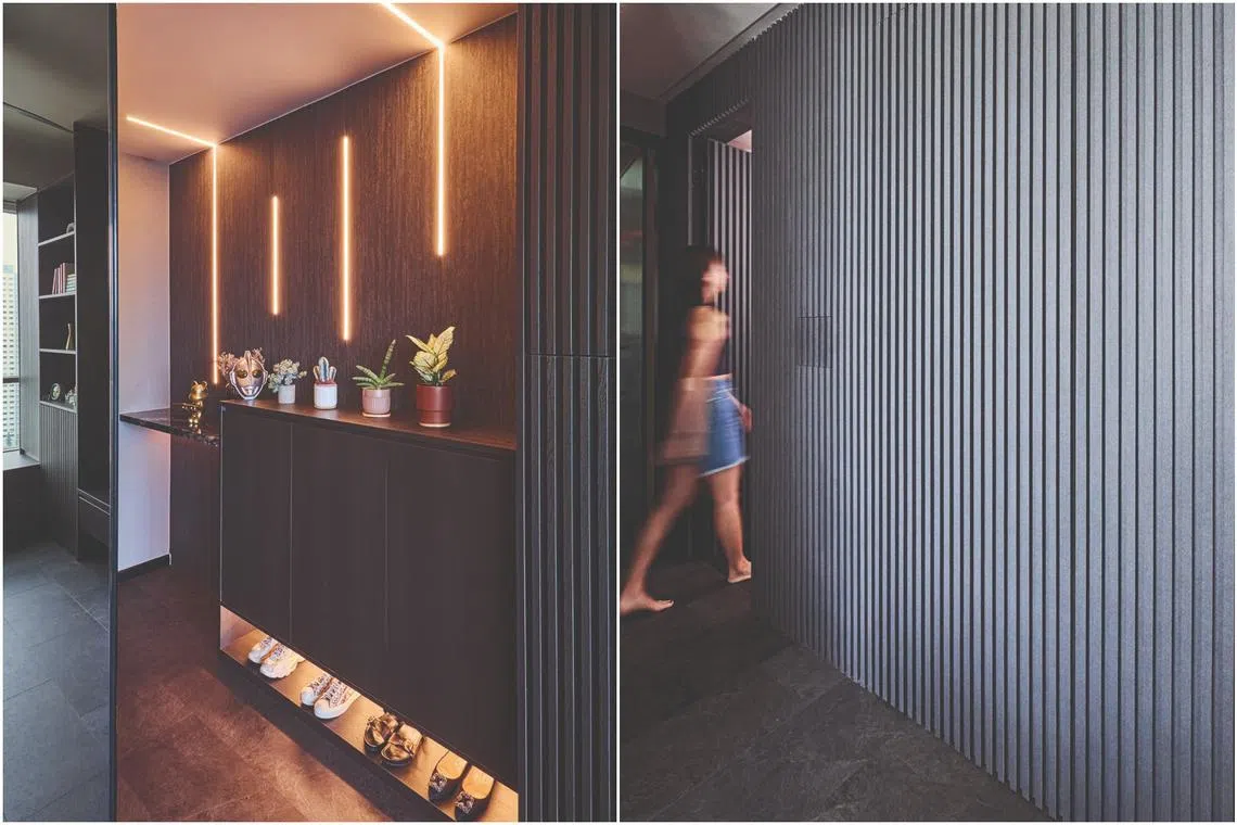 Despite her need for storage, Ms Chua was adamant about not crowding the entrance with too much built-in cabinetry. Her foyer serves mainly as a spot to place keys, store shoes and display a few knick-knacks.