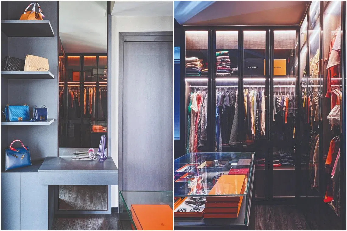 In her brief to design studio The Interior Lab’s manager and senior interior stylist Yen Ng, Ms Chua requested a dark, modern-luxe look that was also practical, with plenty of storage.
