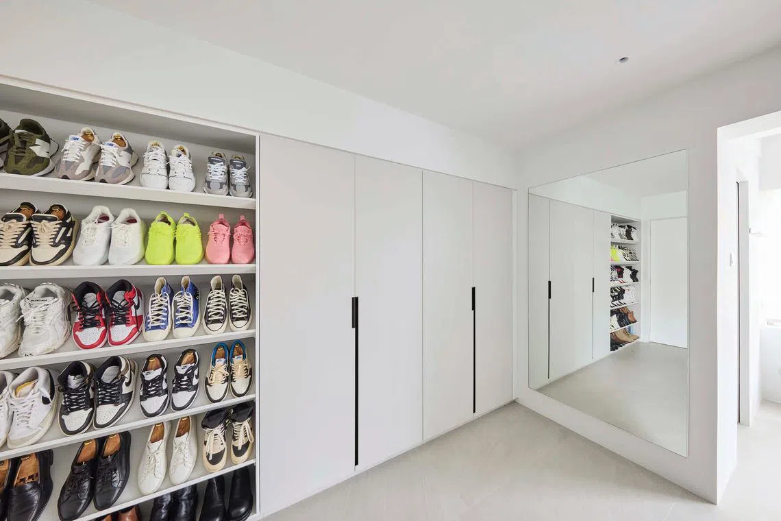 The second bedroom belongs to the Lings’ son, with provisions made for his exercise equipment and shoe collection.