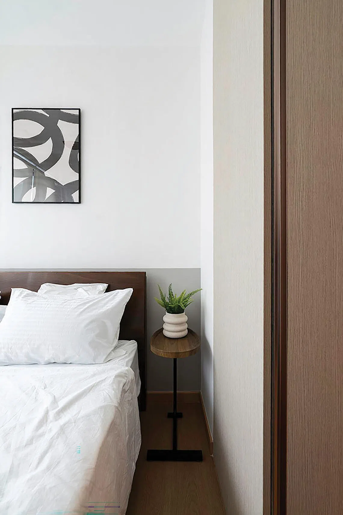 The owner also wanted enough space so her parents could be comfortable during their visits. The two bedrooms were furnished sparingly, as there was not enough space for major carpentry works.