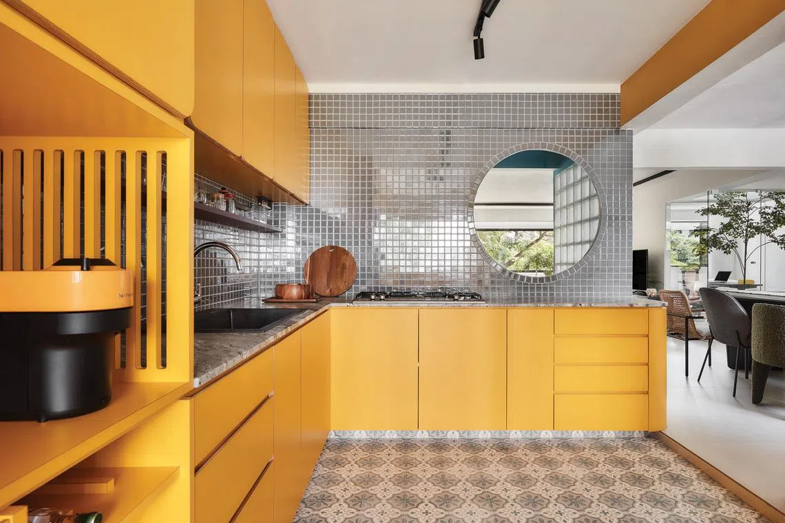 For the kitchen, Ms Lim chose a bright yellow laminate that captures the energy and movement of the space.