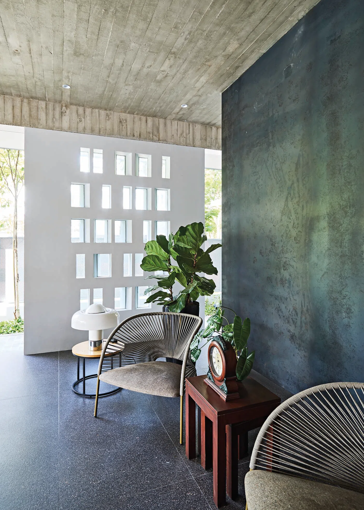To connect the home with the outdoors, Ms Tan created small openings that offer the inhabitants views of the surroundings while also preventing outsiders from looking in, and large sliding windows and doors to open up the interior spaces.