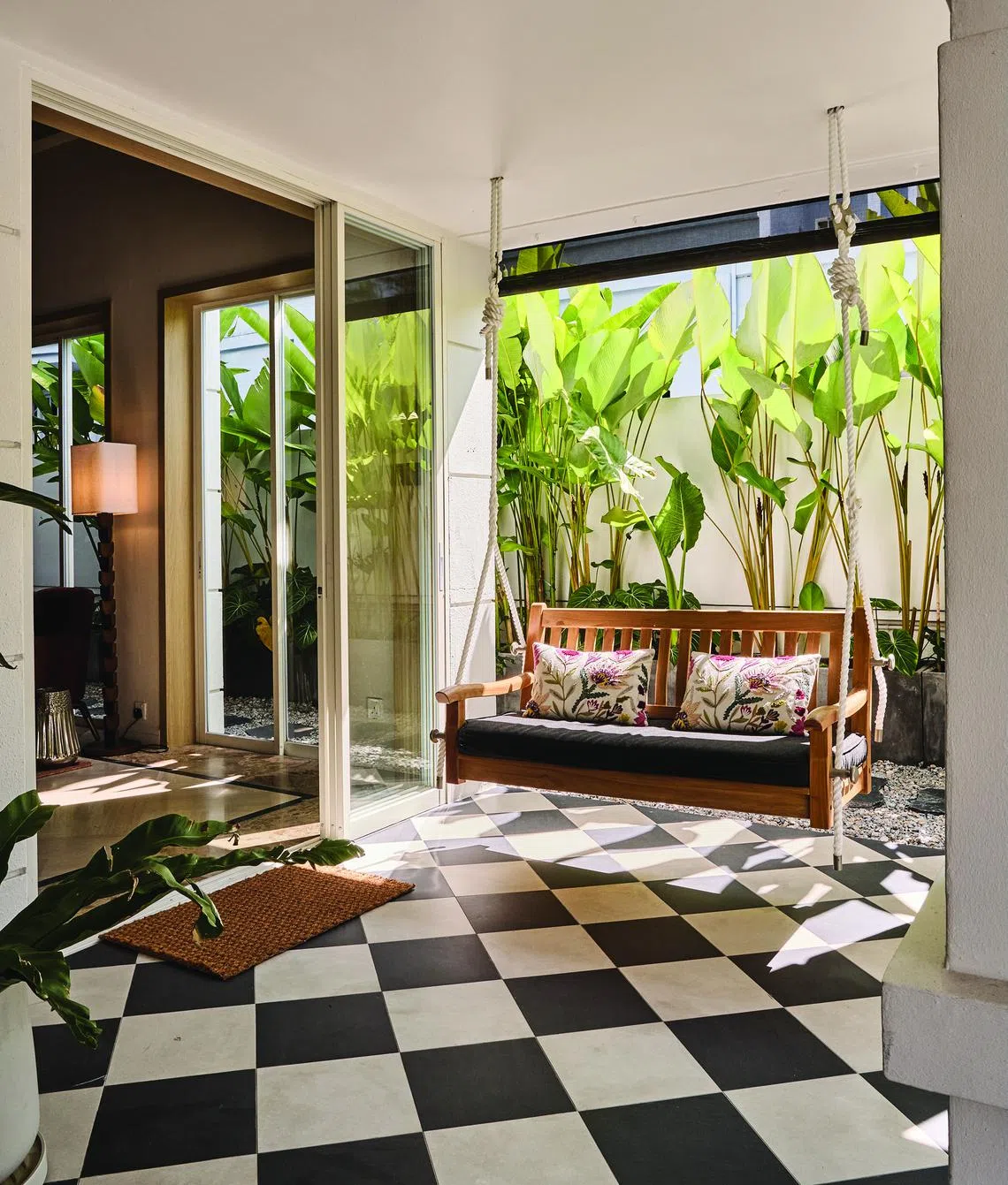 “I introduced layers of tropical foliage, sculptural trees, a herb garden and meandering pebble pathways to create a sense of discovery,” she says.