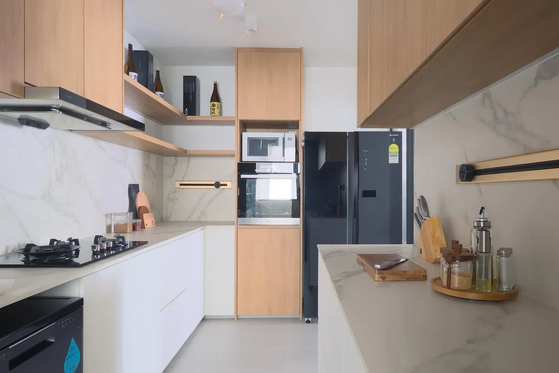 “Our moods vary through the days and we wanted our home to reflect that, so you will find some Japandi or industrial elements within the space,” says Mr Goh.