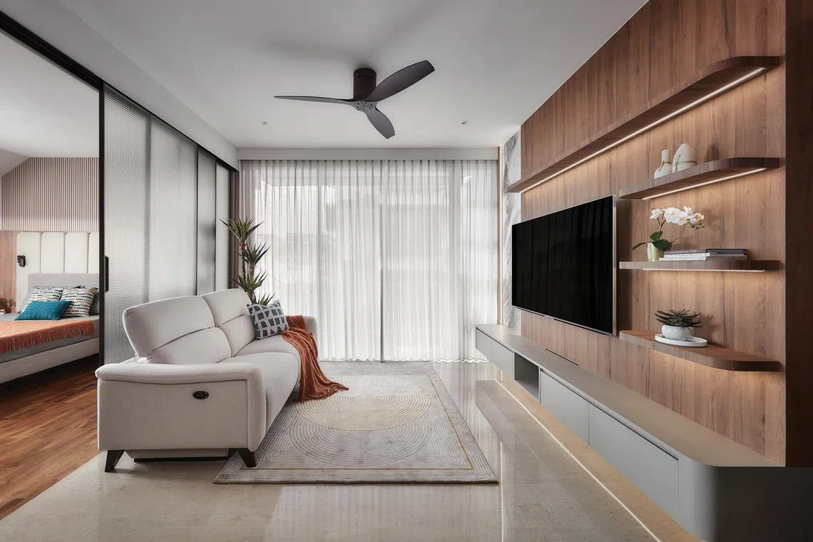 “When the sliding doors are open, you really see the depth of the apartment – it looks bigger,” says Mr Richard Young, the owner’s son.